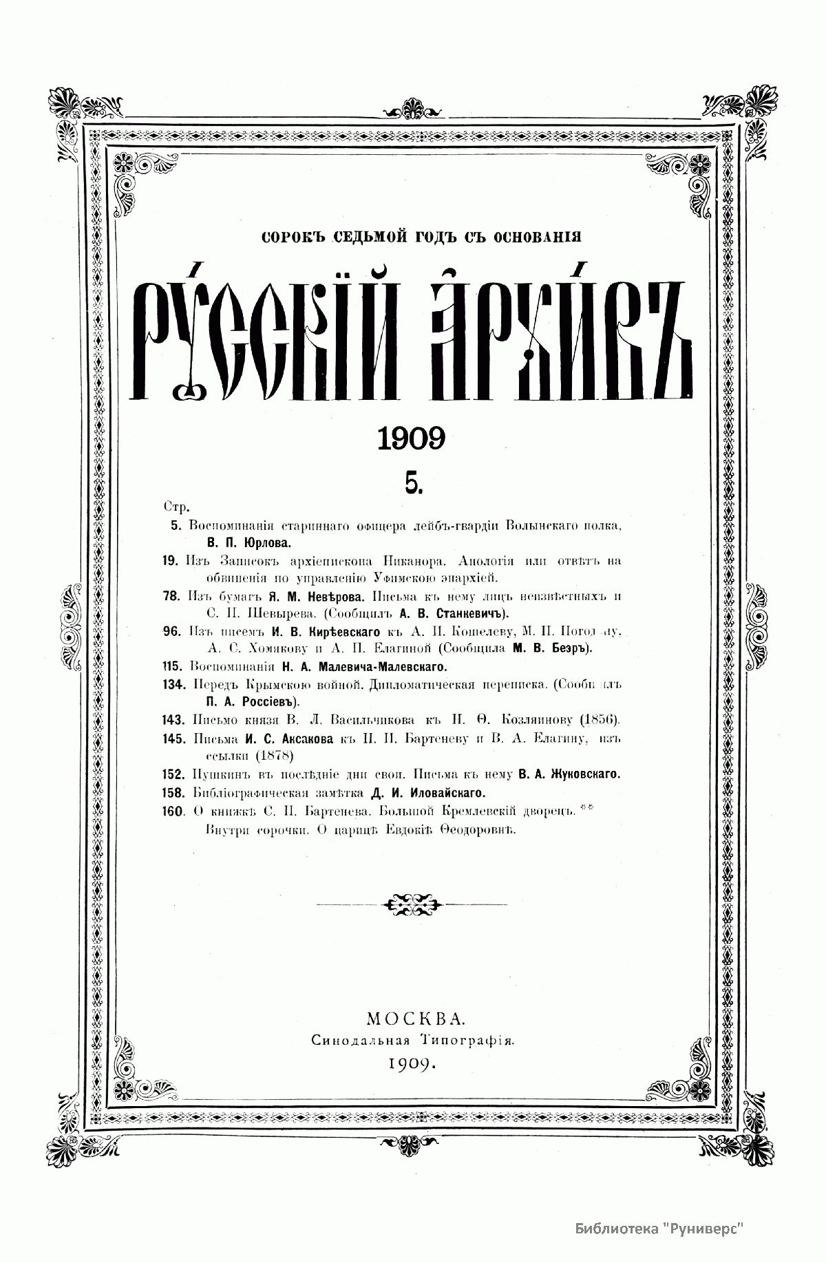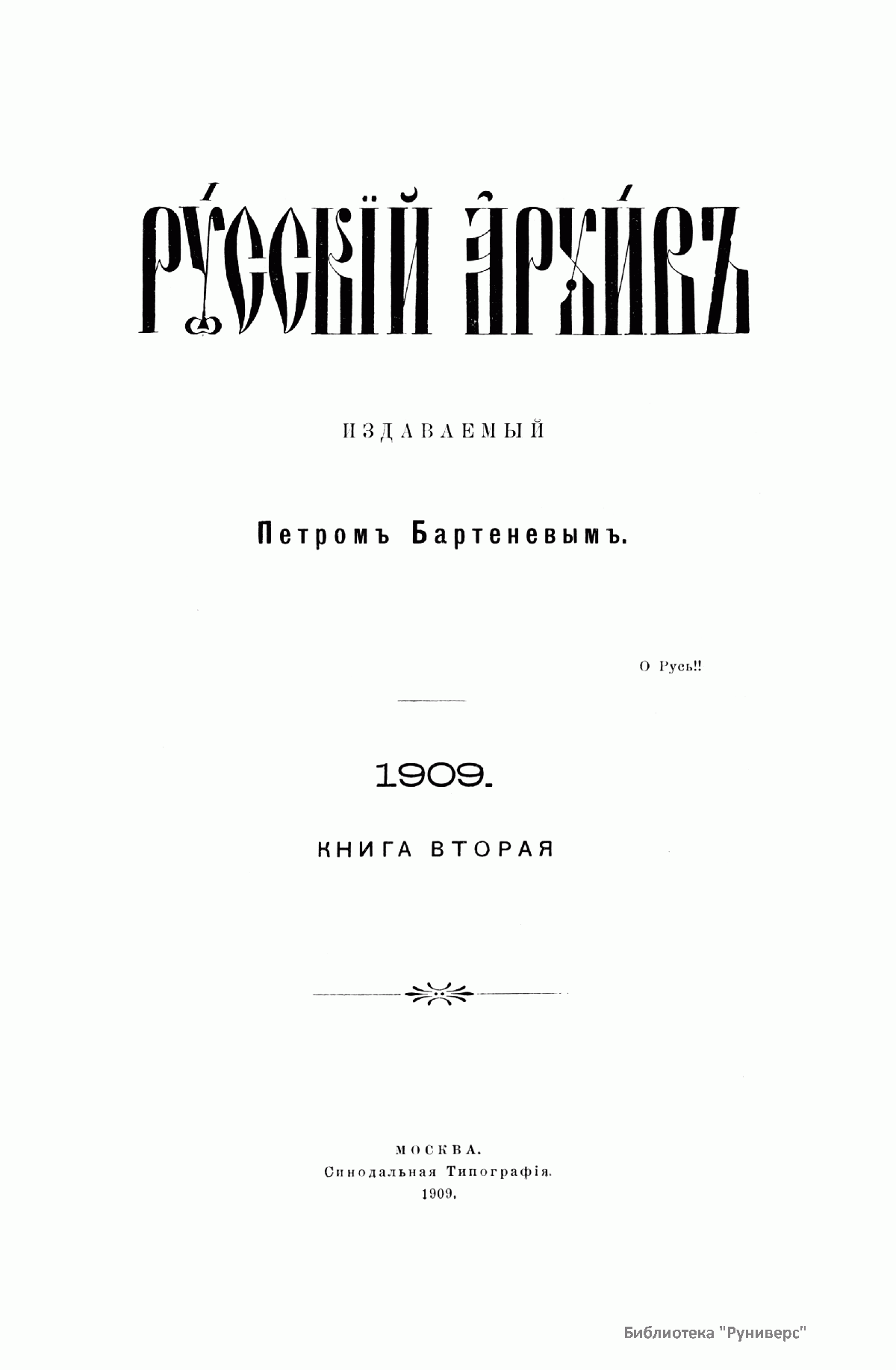 Русскiй архивъ. Историко-литературный сборникъ. 1909. Выпуски 5-8