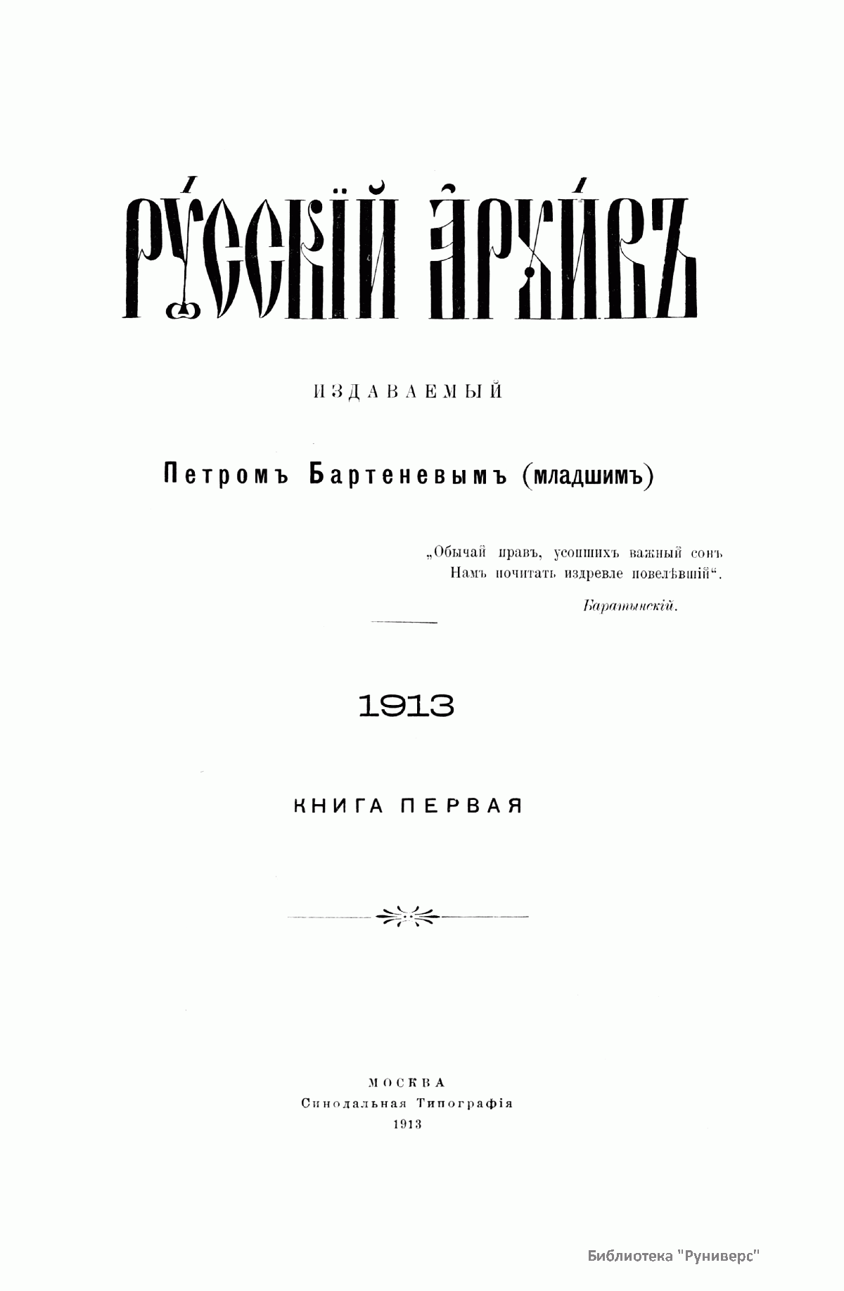 Русский архив. Историко-литературный сборник. 1913. Выпуски 1-6