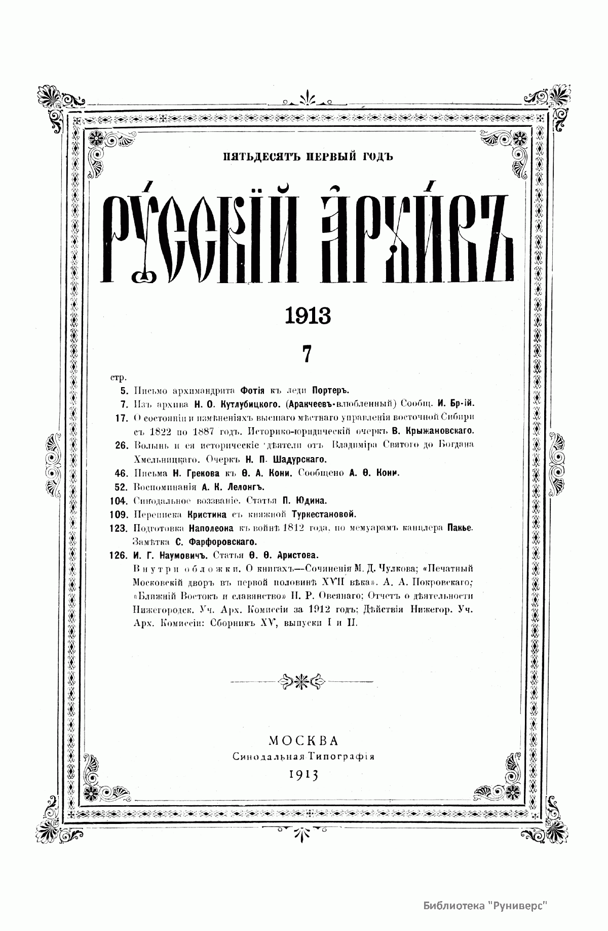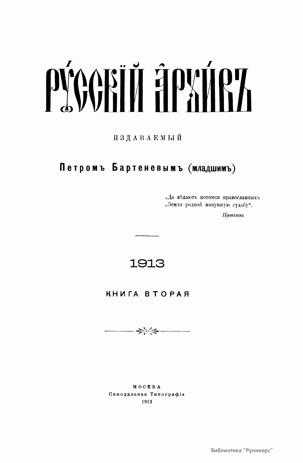 Русскiй архивъ. Историко-литературный сборникъ. 1913. Выпуски 7-9