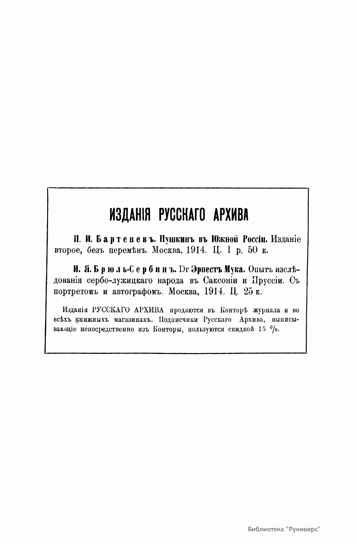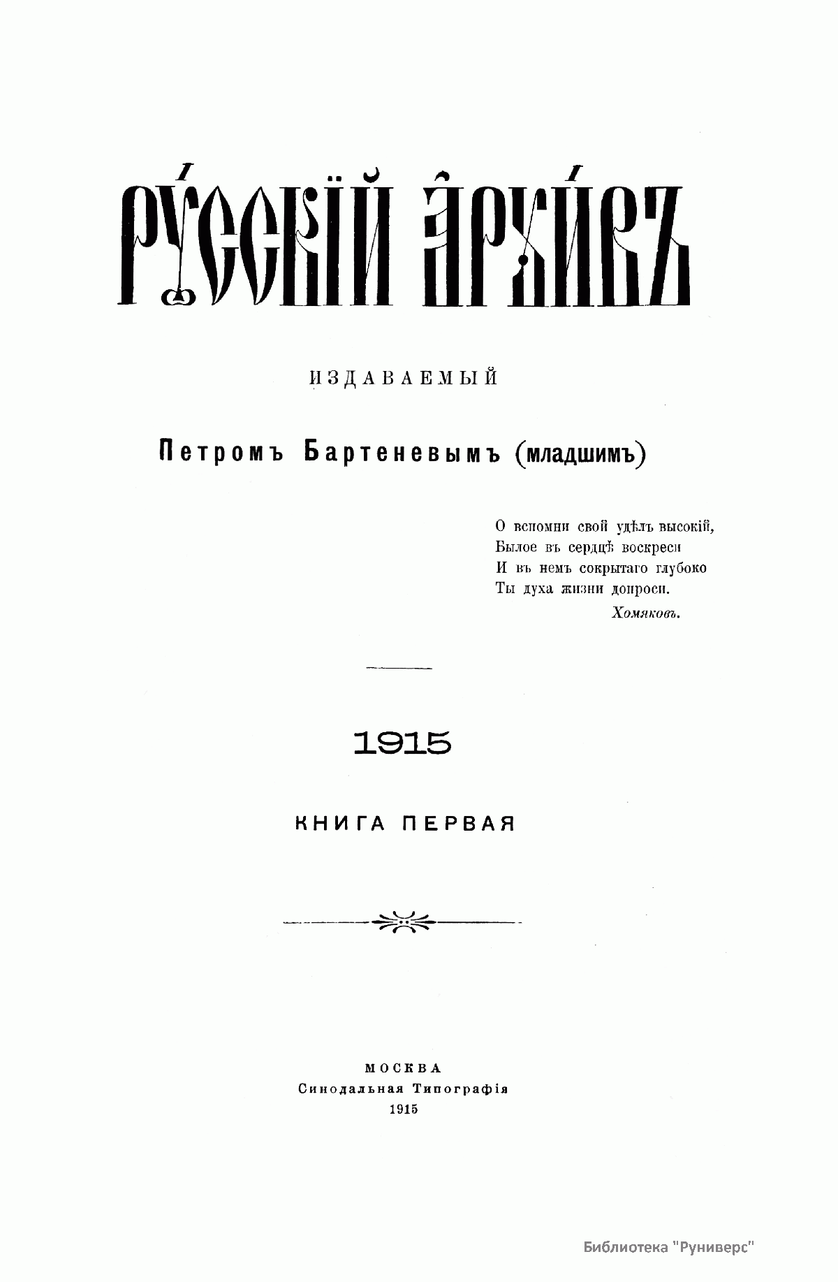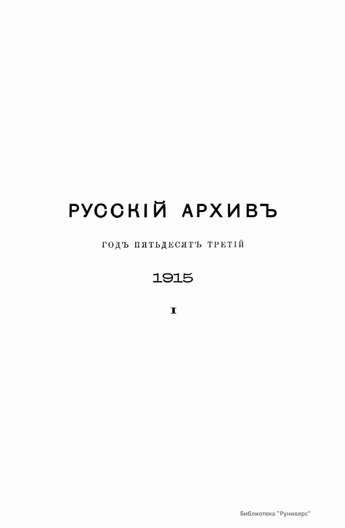 Русский архив. Историко-литературный сборник. 1915. Выпуски 1-4