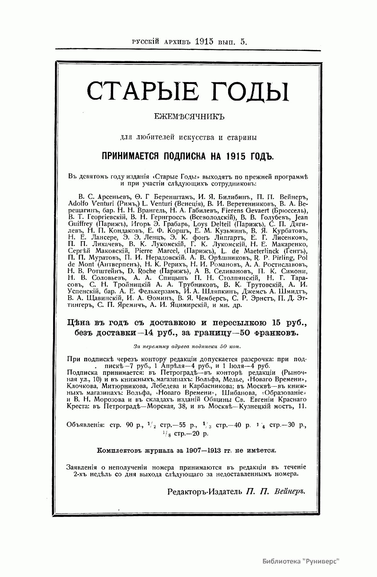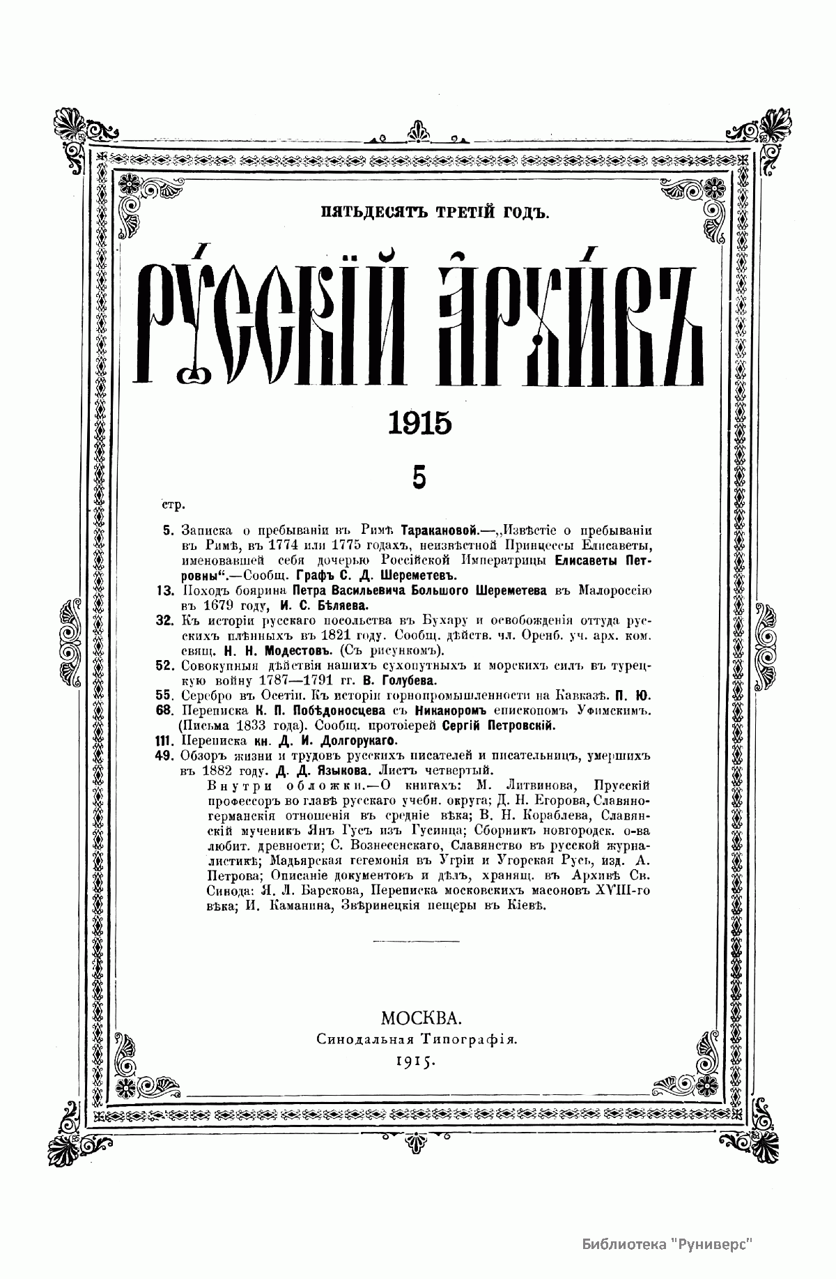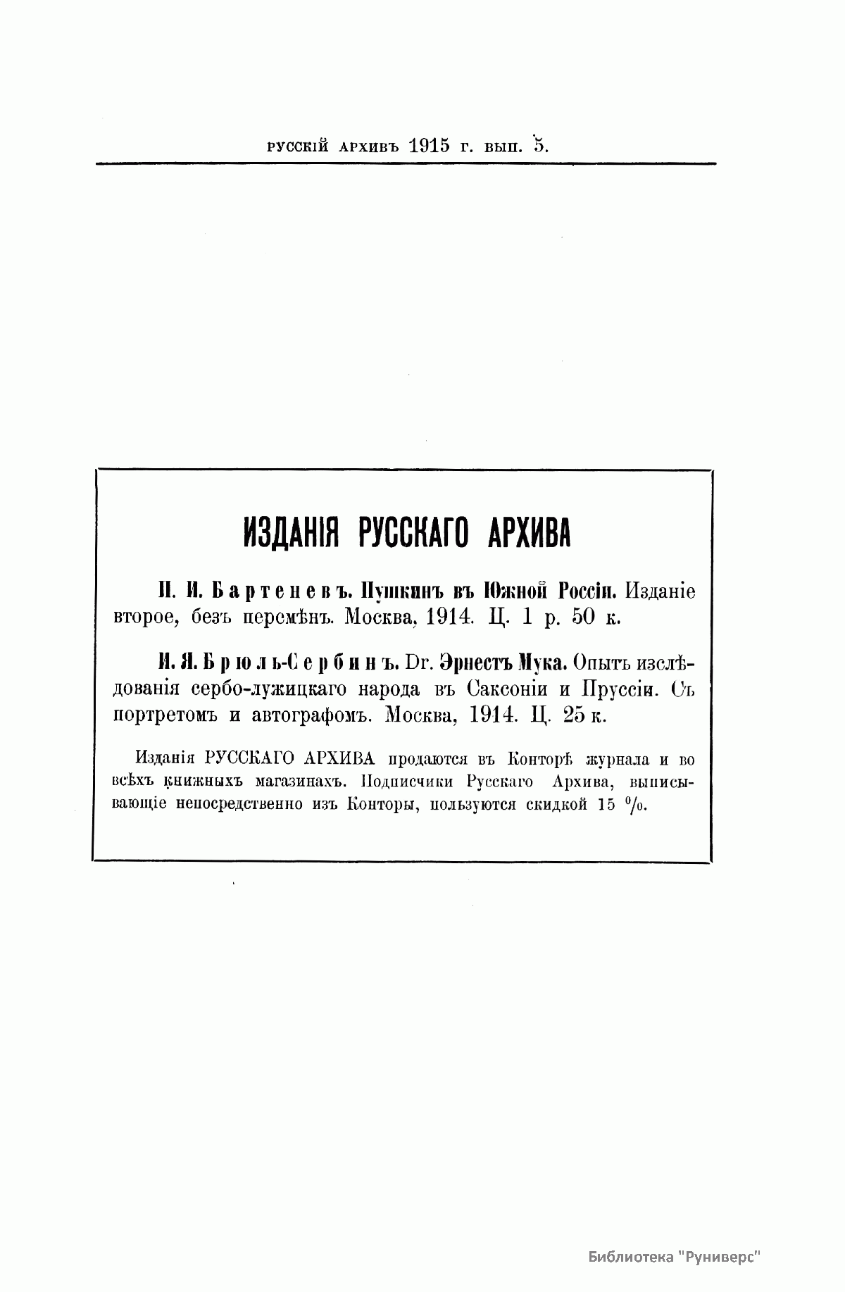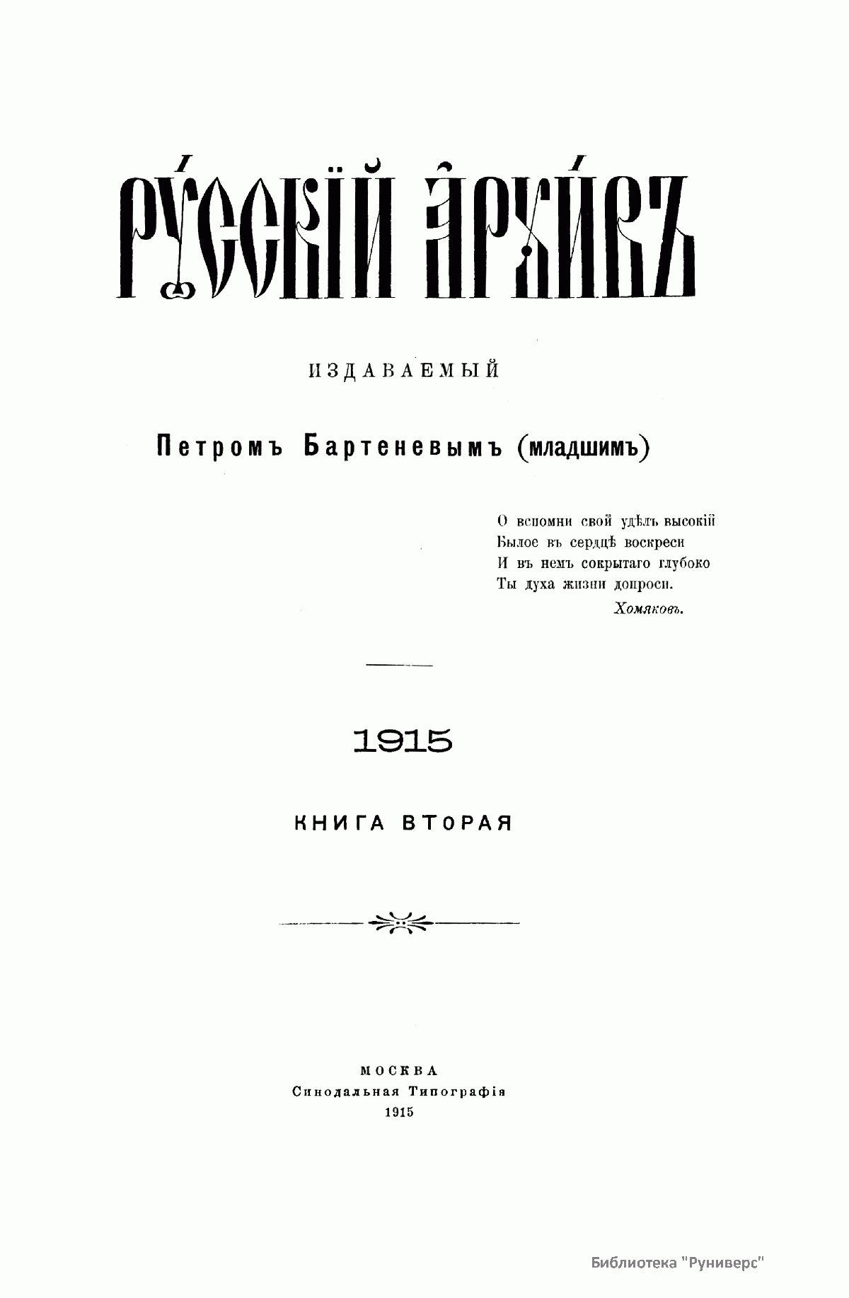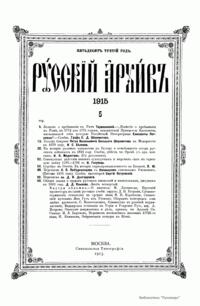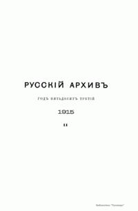 Русскiй архивъ. Историко-литературный сборникъ. 1915. Выпуски 5-8