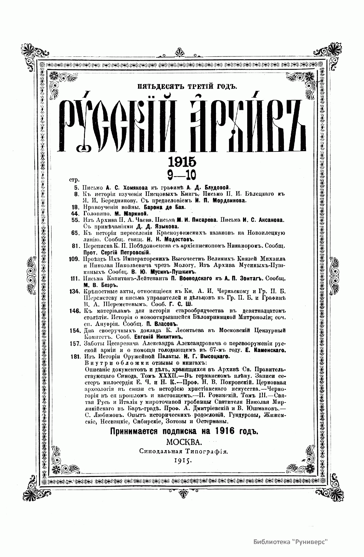 Русскiй архивъ. Историко-литературный сборникъ. 1915. Выпуски 9-12