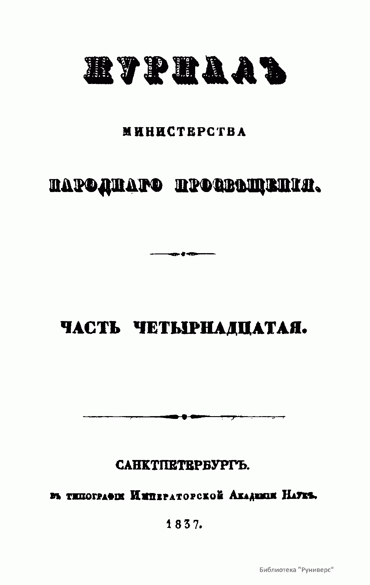 Журнал Министерства народного просвещения. Часть четырнадцатая