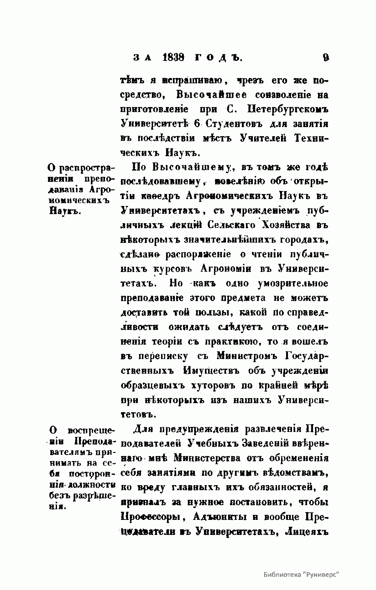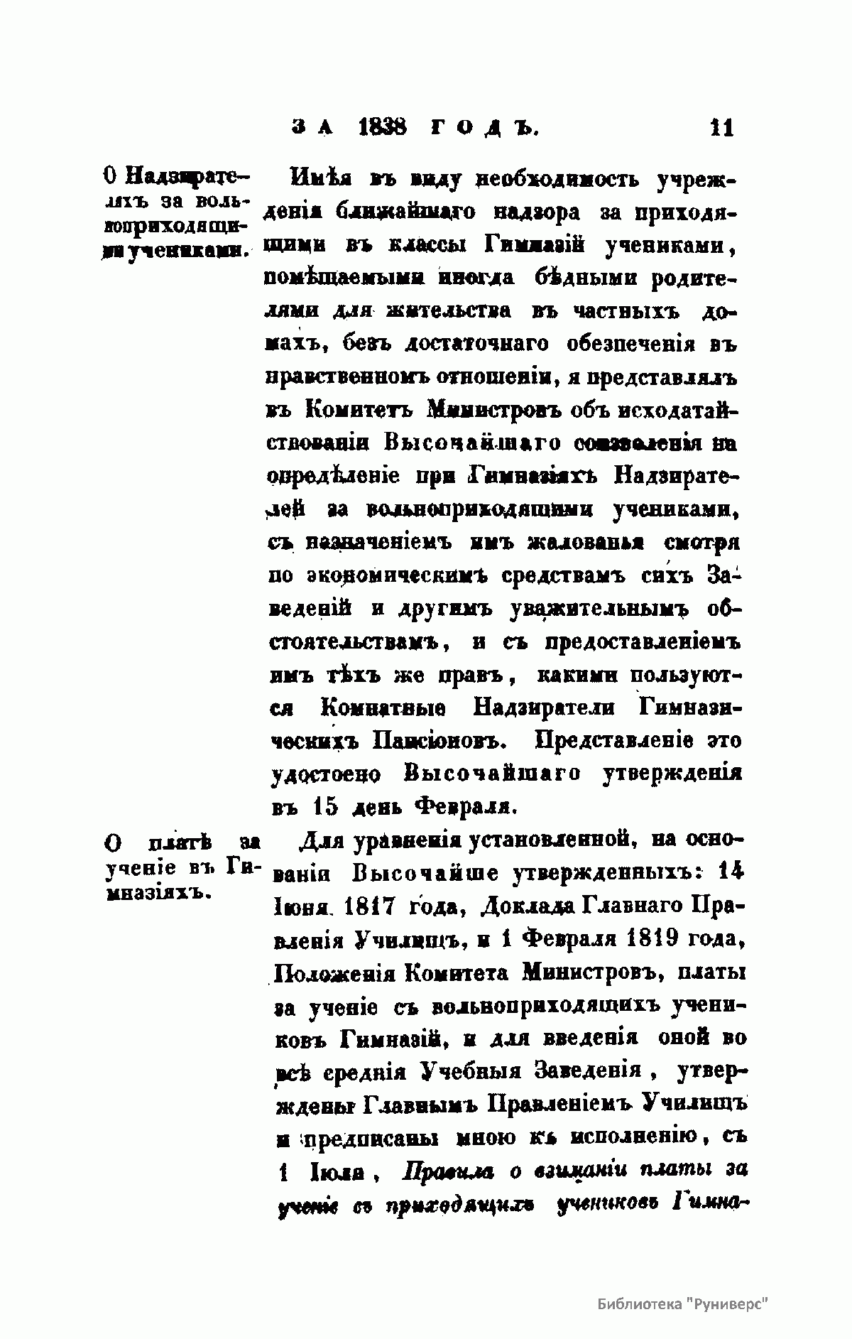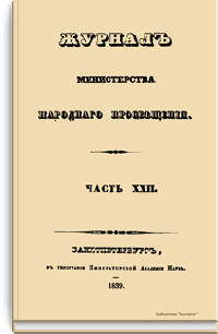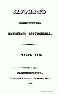 Журнал Министерства народного просвещения выходил с 1834-го по 1917 год. Официальный периодический журнал об успехах просвещения в России. Издатели журнала уверены в том, что «если для каждого человека необходим выход из грубой тьмы невежества и беспрерывное дальнейшее движение к свету, то для народов необходимо попечительное участие правительства в образовании. Только правительство имеет все средства знать и высоту успехов всемирного образования, и настоящие нужды Отечества».