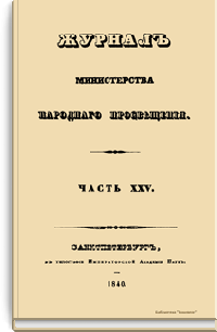 Журнал Министерства народного просвещения выходил с 1834-го по 1917 год. Официальный периодический журнал об успехах просвещения в России. Издатели журнала уверены в том, что «если для каждого человека необходим выход из грубой тьмы невежества и беспрерывное дальнейшее движение к свету, то для народов необходимо попечительное участие правительства в образовании. Только правительство имеет все средства знать и высоту успехов всемирного образования, и настоящие нужды Отечества».