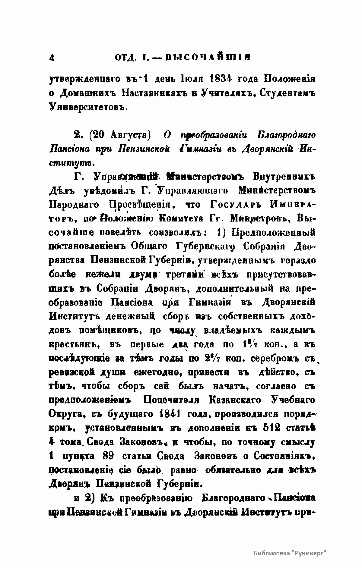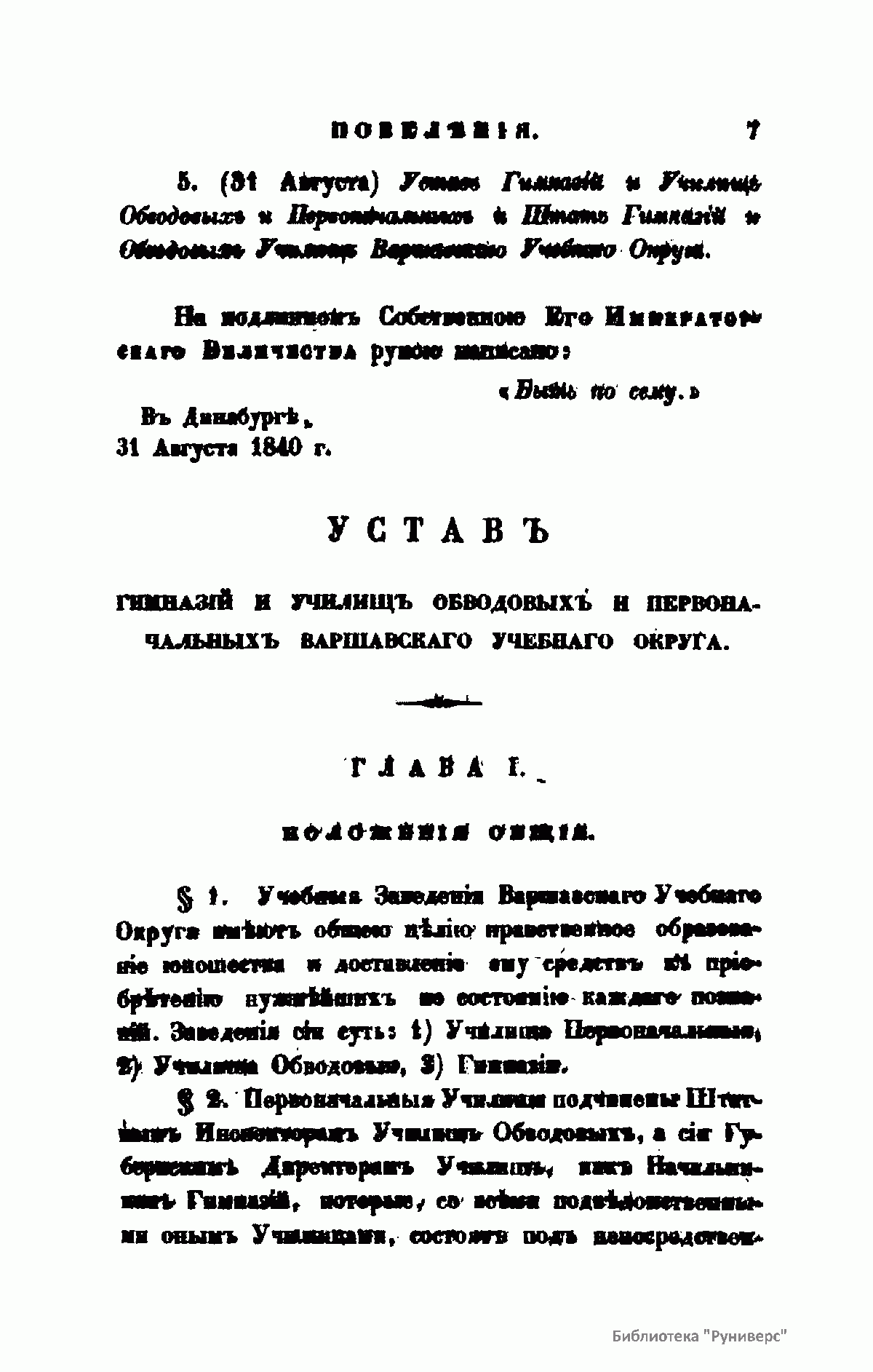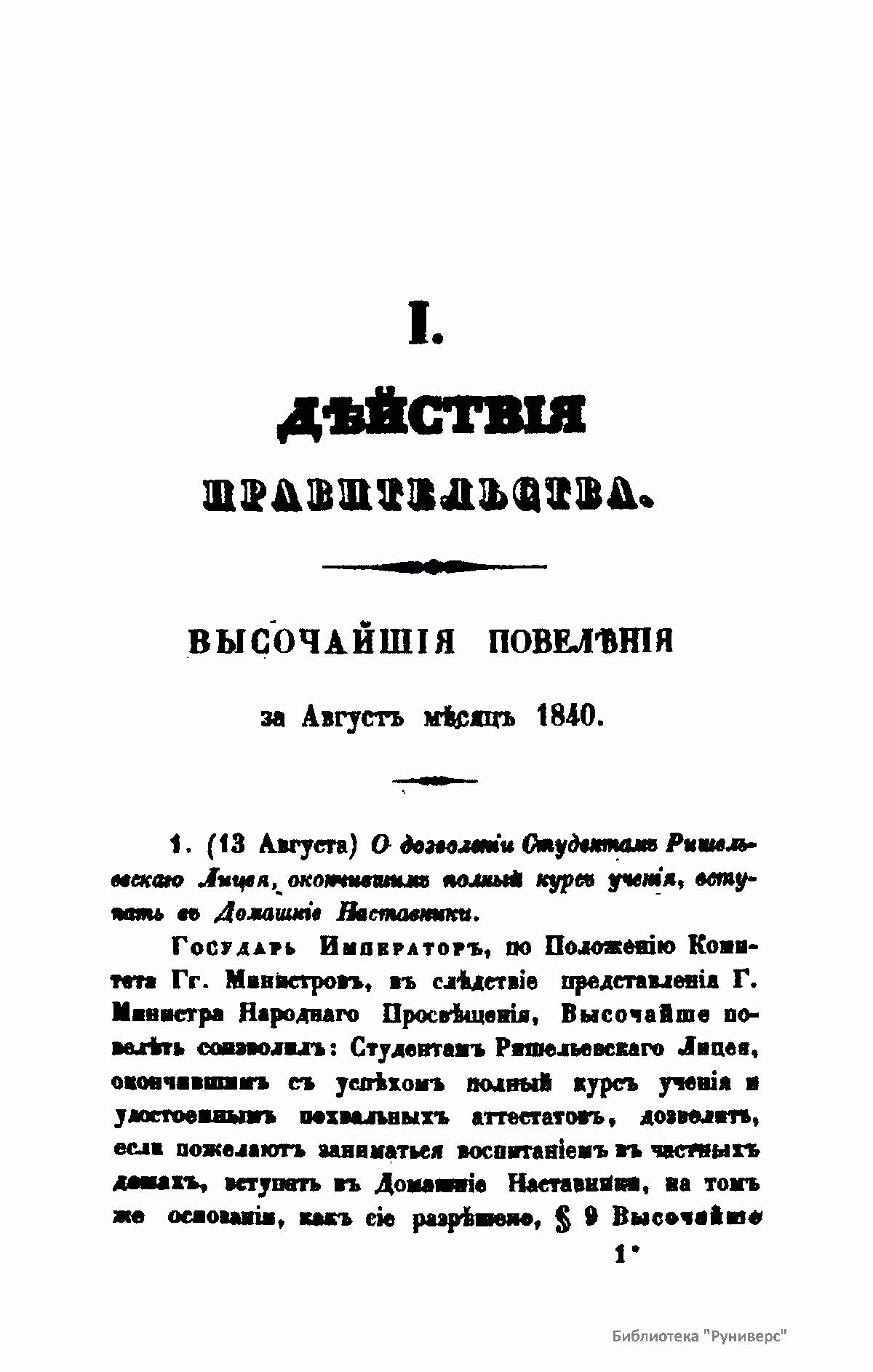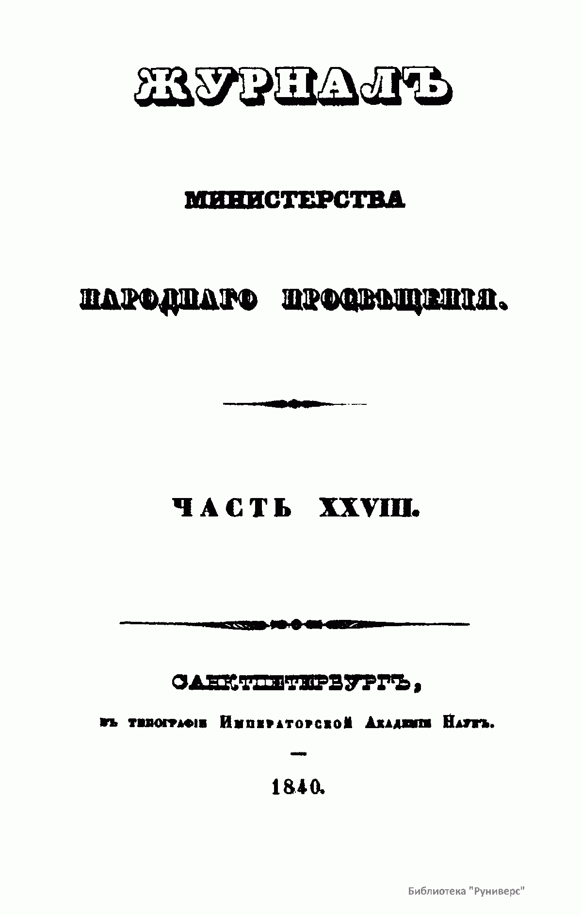 Журнал Министерства народного просвещения выходил с 1834-го по 1917 год. Официальный периодический журнал об успехах просвещения в России. Издатели журнала уверены в том, что «если для каждого человека необходим выход из грубой тьмы невежества и беспрерывное дальнейшее движение к свету, то для народов необходимо попечительное участие правительства в образовании. Только правительство имеет все средства знать и высоту успехов всемирного образования, и настоящие нужды Отечества».