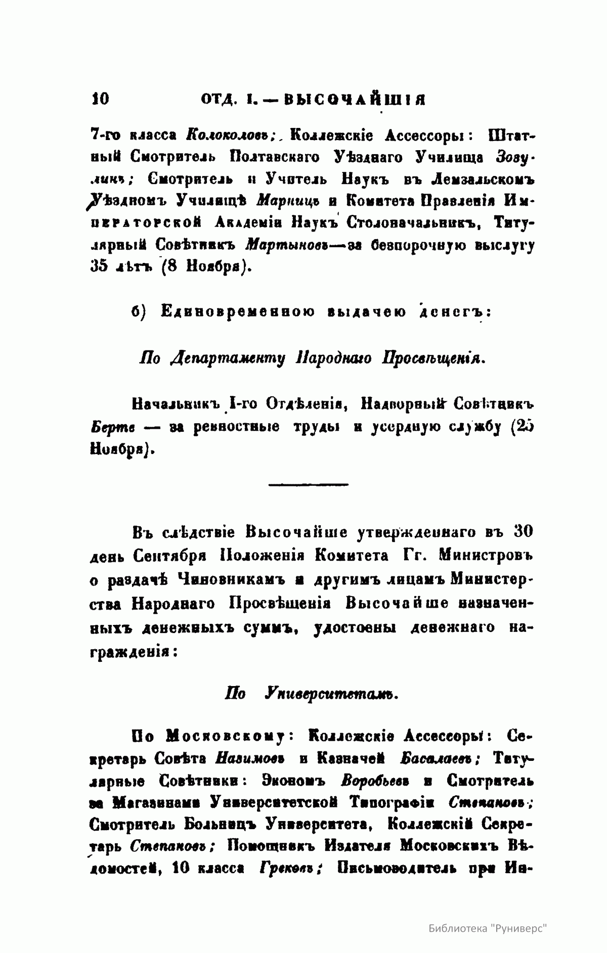1. «Записки Департамента народного просвещения». Вышло в свет три книги этого издания – в 1825, 1827 и 1829-м годах.