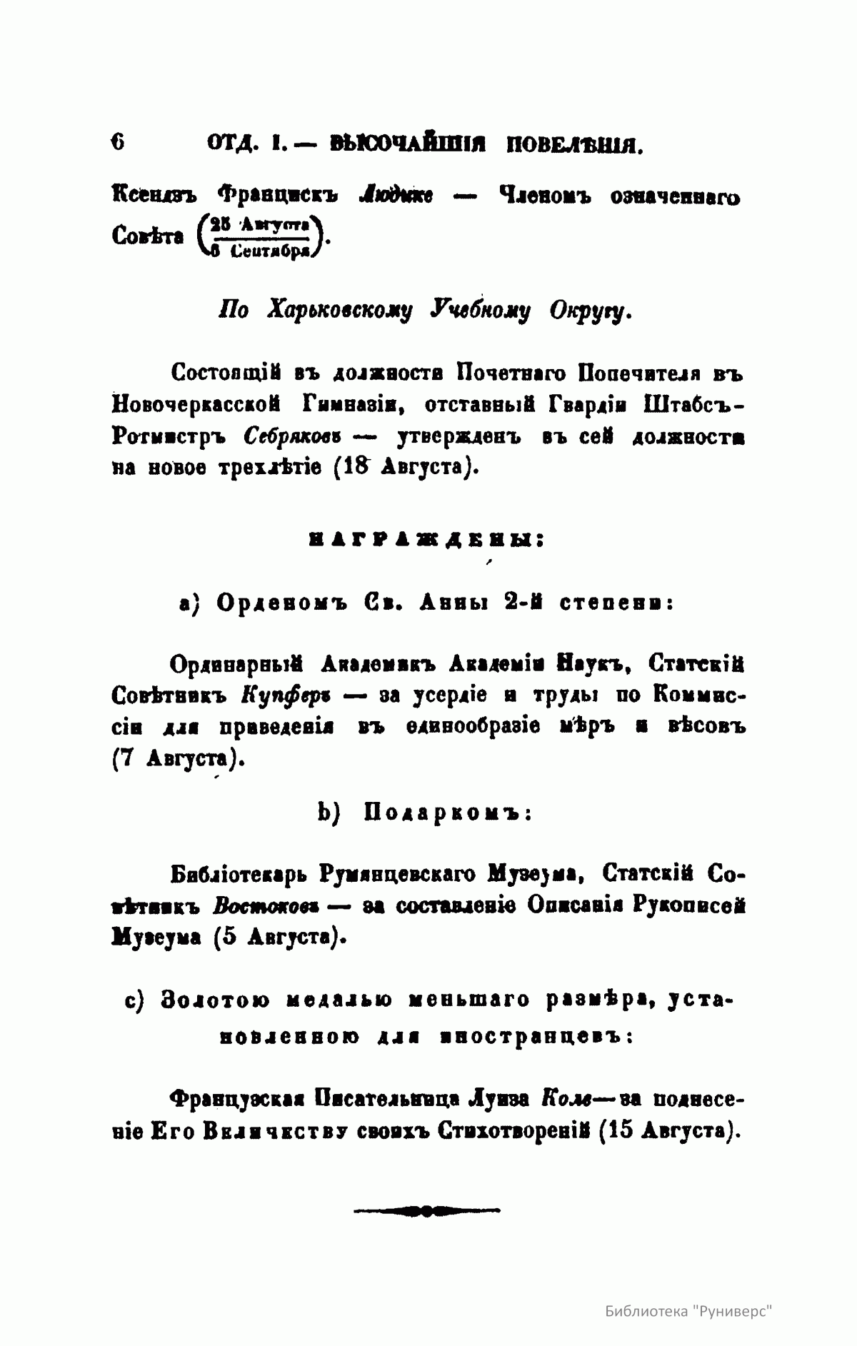 1. «Записки Департамента народного просвещения». Вышло в свет три книги этого издания – в 1825, 1827 и 1829-м годах.
