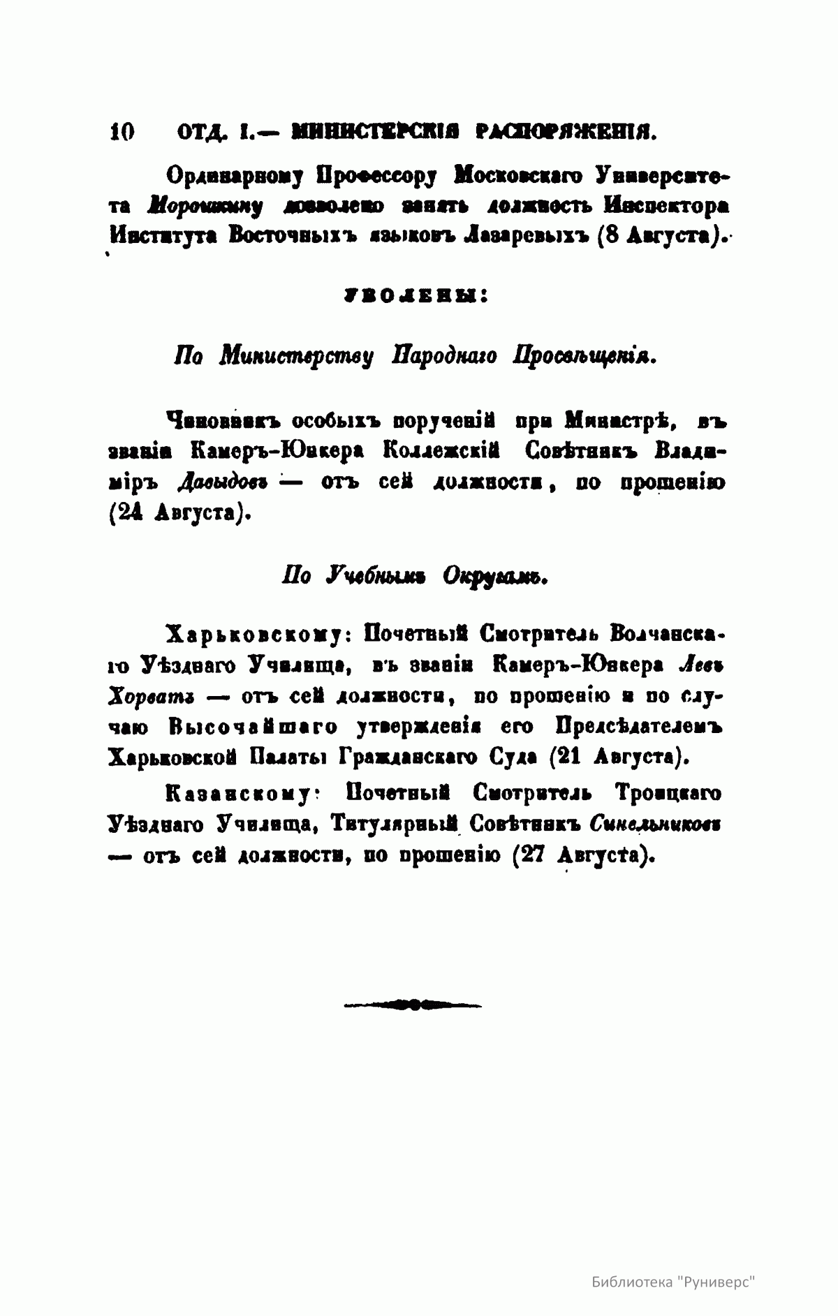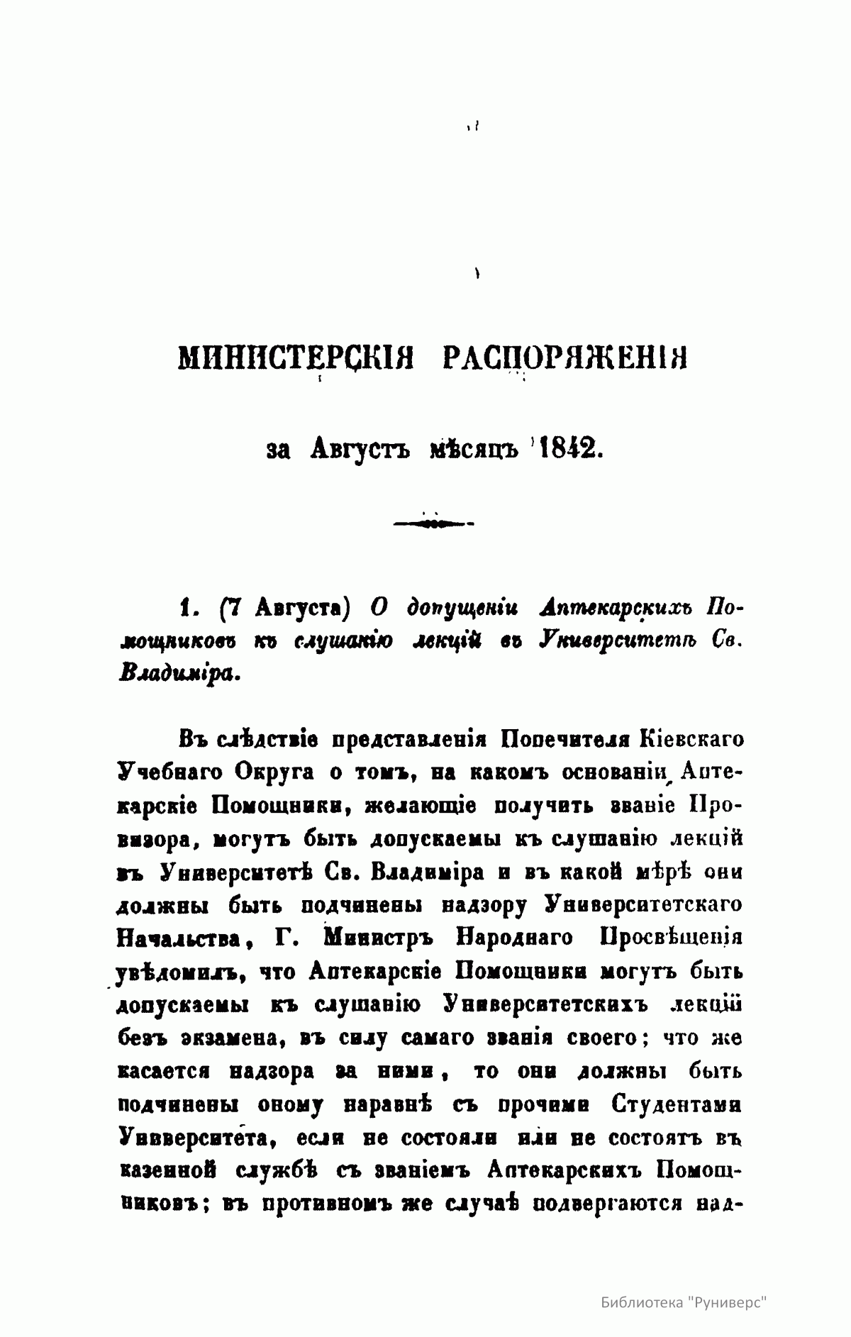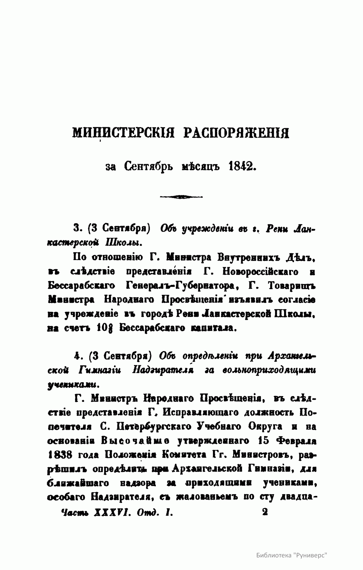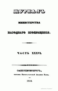 Журнал Министерства народного просвещения выходил с 1834-го по 1917 год. Официальный периодический журнал об успехах просвещения в России. Издатели журнала уверены в том, что «если для каждого человека необходим выход из грубой тьмы невежества и беспрерывное дальнейшее движение к свету, то для народов необходимо попечительное участие правительства в образовании. Только правительство имеет все средства знать и высоту успехов всемирного образования, и настоящие нужды Отечества».