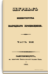 Журнал Министерства народного просвещения выходил с 1834-го по 1917 год. Официальный периодический журнал об успехах просвещения в России. Издатели журнала уверены в том, что «если для каждого человека необходим выход из грубой тьмы невежества и беспрерывное дальнейшее движение к свету, то для народов необходимо попечительное участие правительства в образовании. Только правительство имеет все средства знать и высоту успехов всемирного образования, и настоящие нужды Отечества».