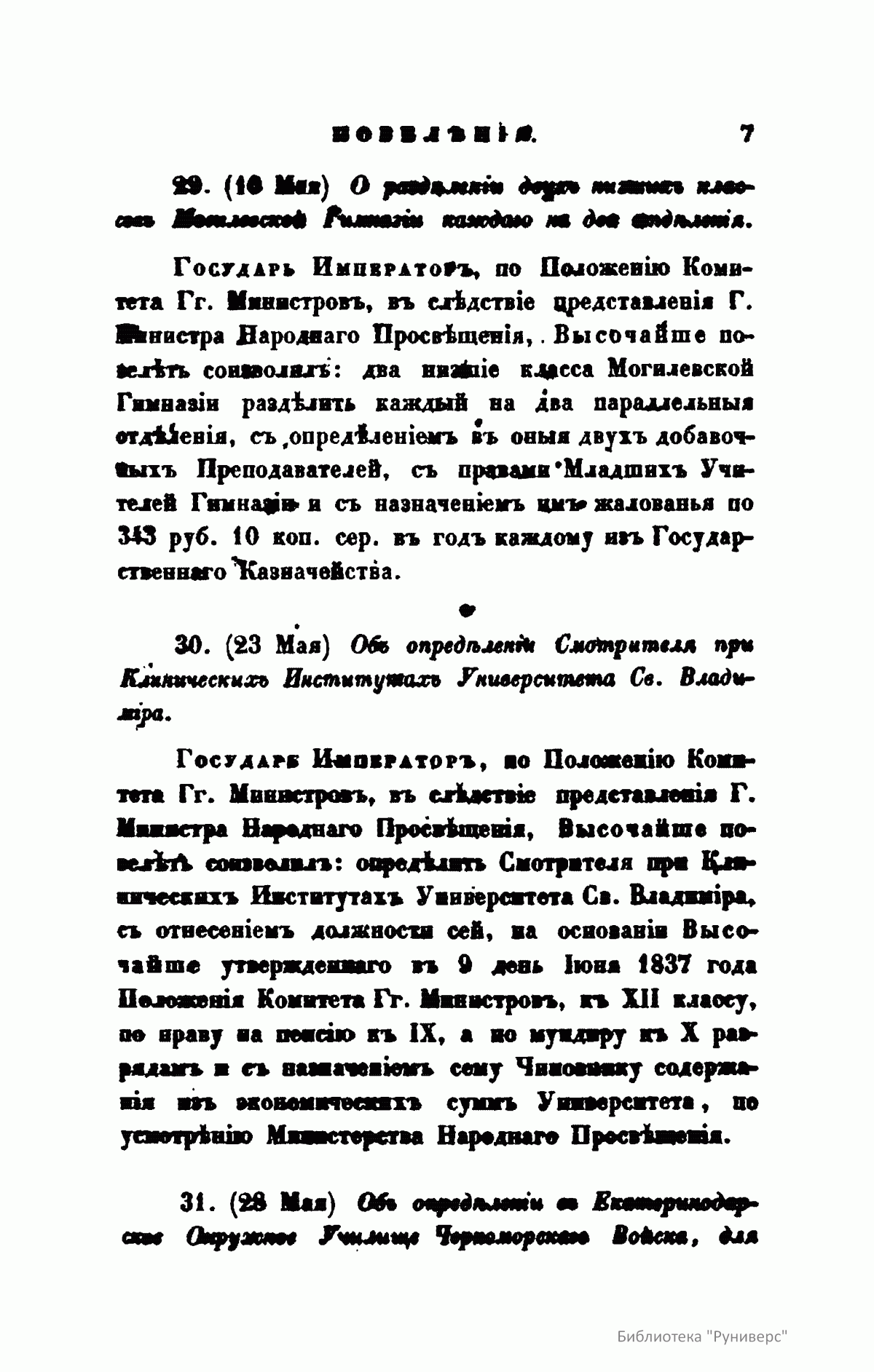 1. «Записки Департамента народного просвещения». Вышло в свет три книги этого издания – в 1825, 1827 и 1829-м годах.