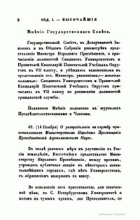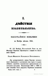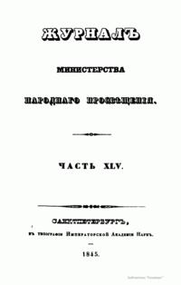 Журнал Министерства народного просвещения выходил с 1834-го по 1917 год. Официальный периодический журнал об успехах просвещения в России. Издатели журнала уверены в том, что «если для каждого человека необходим выход из грубой тьмы невежества и беспрерывное дальнейшее движение к свету, то для народов необходимо попечительное участие правительства в образовании. Только правительство имеет все средства знать и высоту успехов всемирного образования, и настоящие нужды Отечества».