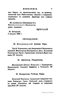 1. «Записки Департамента народного просвещения». Вышло в свет три книги этого издания – в 1825, 1827 и 1829-м годах.