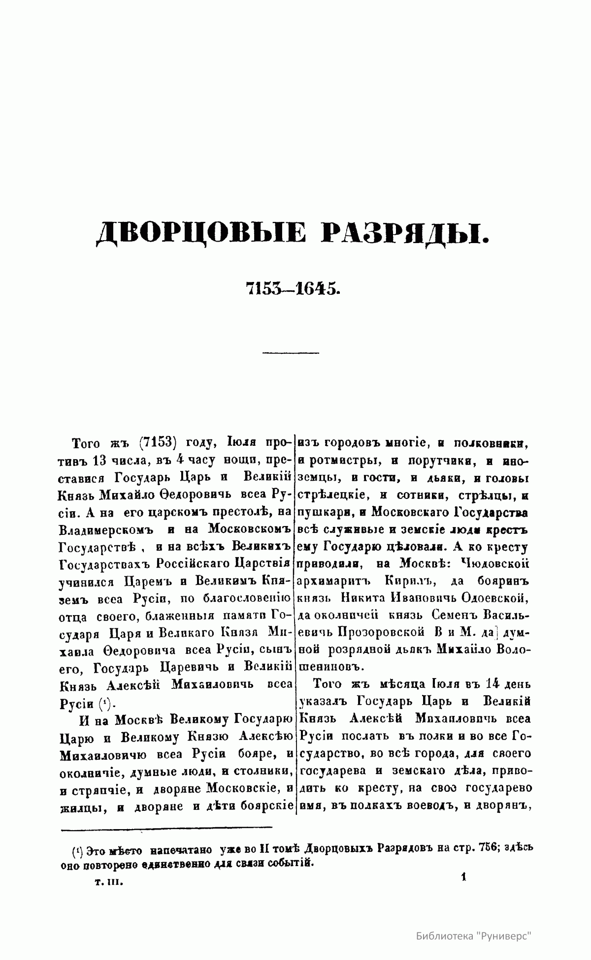 Дворцовые разряды. Томъ третiй. Съ 1645 по 1676 г.