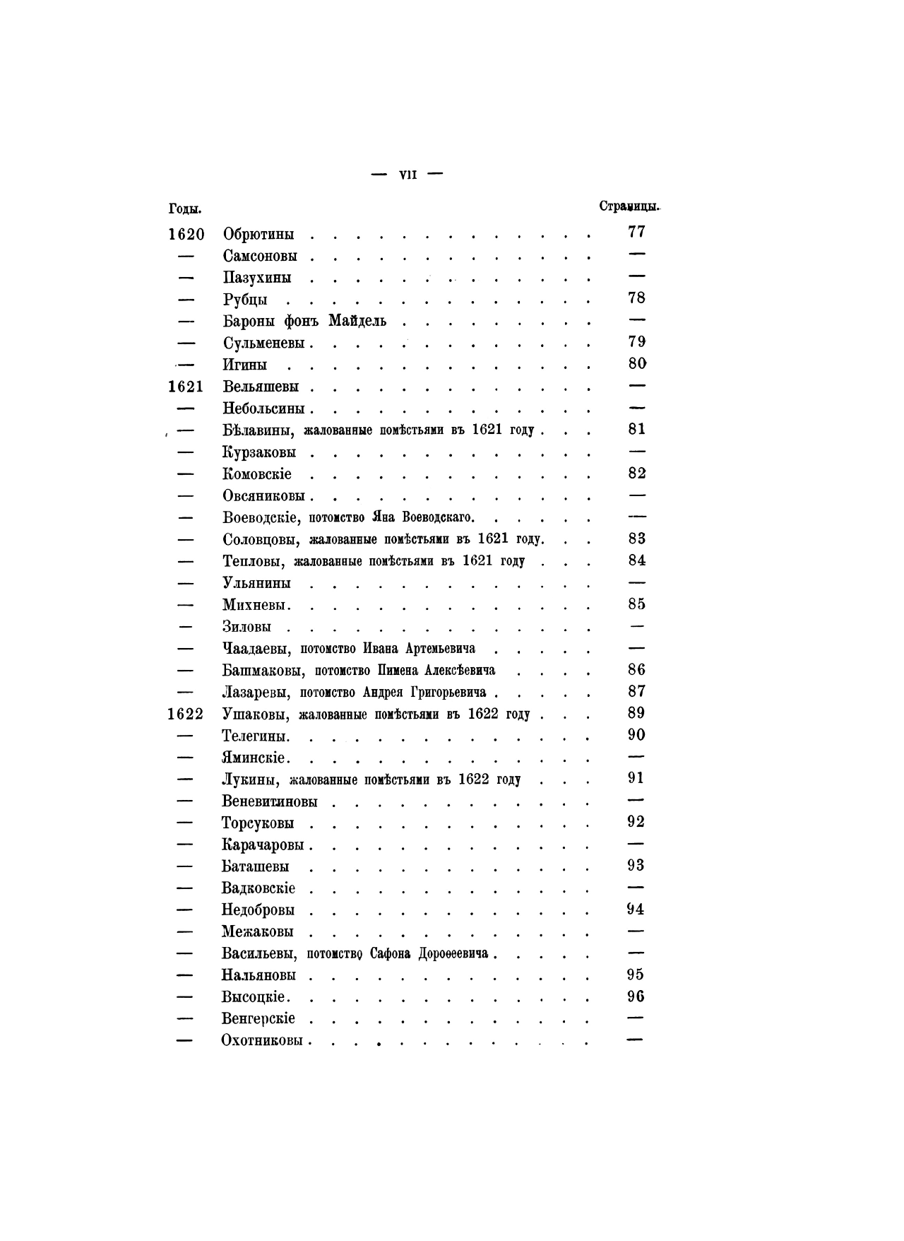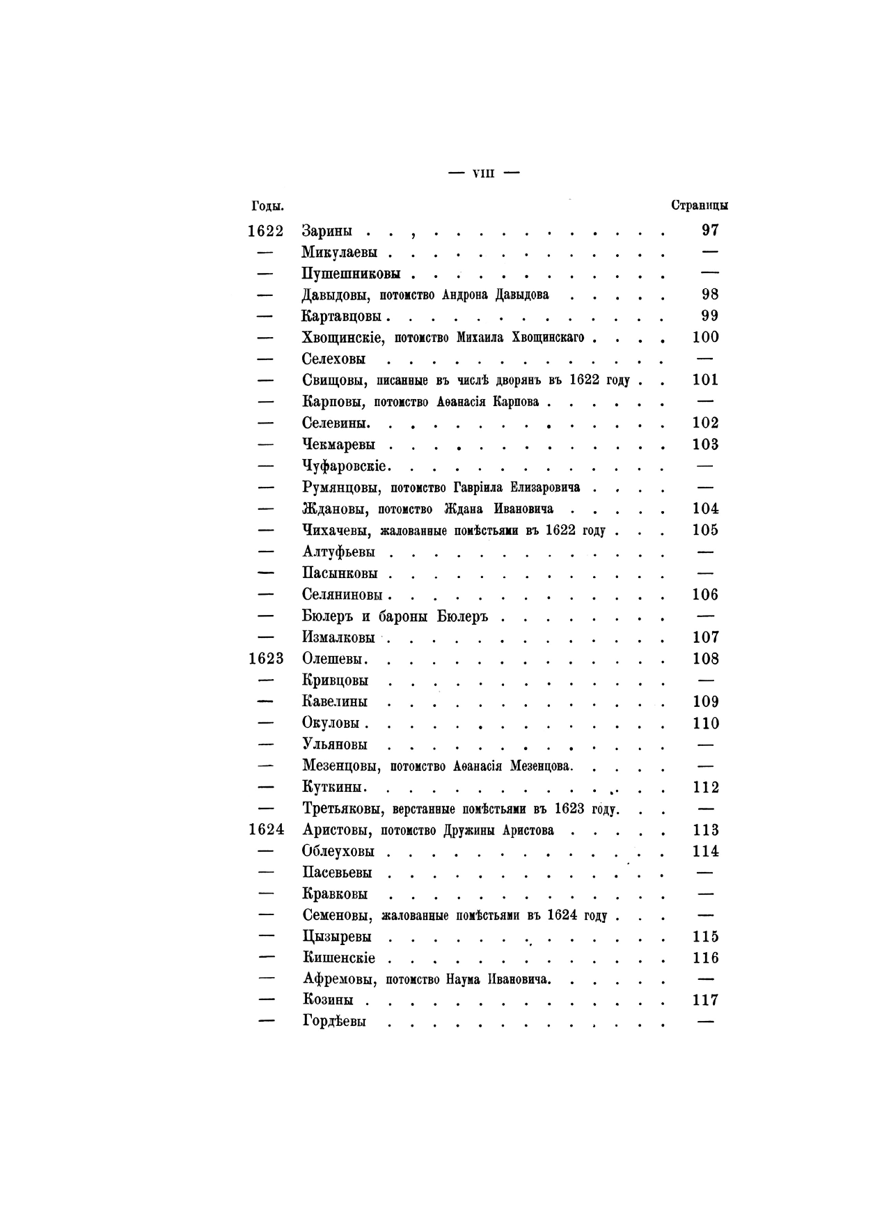 В изданных ранее «Российской родословной книге» П. В. Долгорукова, «Русской родословной книге» А. Б. Лобанова-Ростовского, «Родословном сборнике» Ф. Долгорукова, «Истории родов русского дворянства» П. Н. Петрова помещены родословные многих дворянских родов, сгруппированных отчасти по титулам или происхождению, отчасти в алфавитном порядке. Настоящее издание заключает в себе хронологические, по мере того как появлялись в истории, списки родов с 575 до 1855 года по старшинству происхождения. Для каждого рода сделаны выписки из «Общего гербовника», «Российской родословной книги» П. В. Долгорукова и других источников биографического характера о представителях рода и его родоначальнике. Справочник снабжен именным указателем.