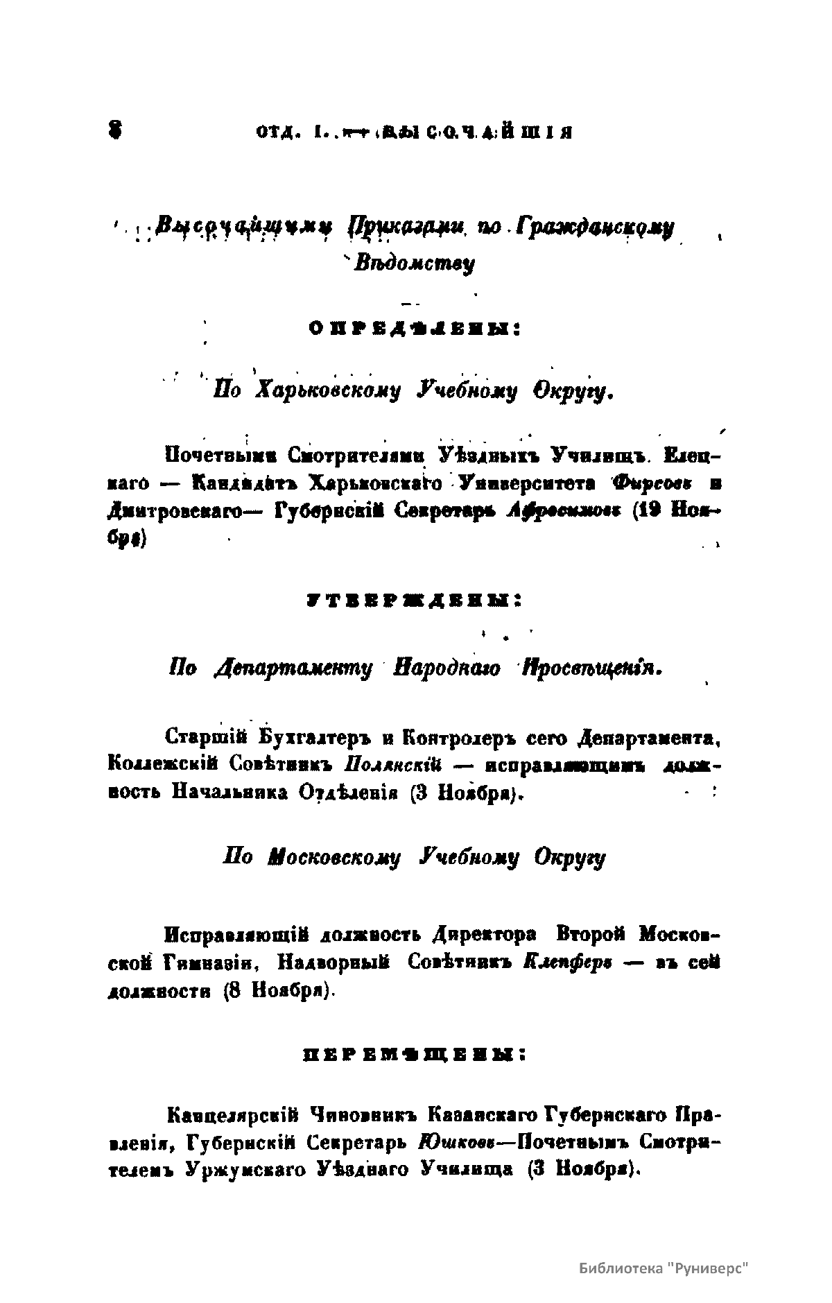С 1864 года стали выходить указатели к повременным изданиям Министерства народного просвещения начиная с 1803 года.