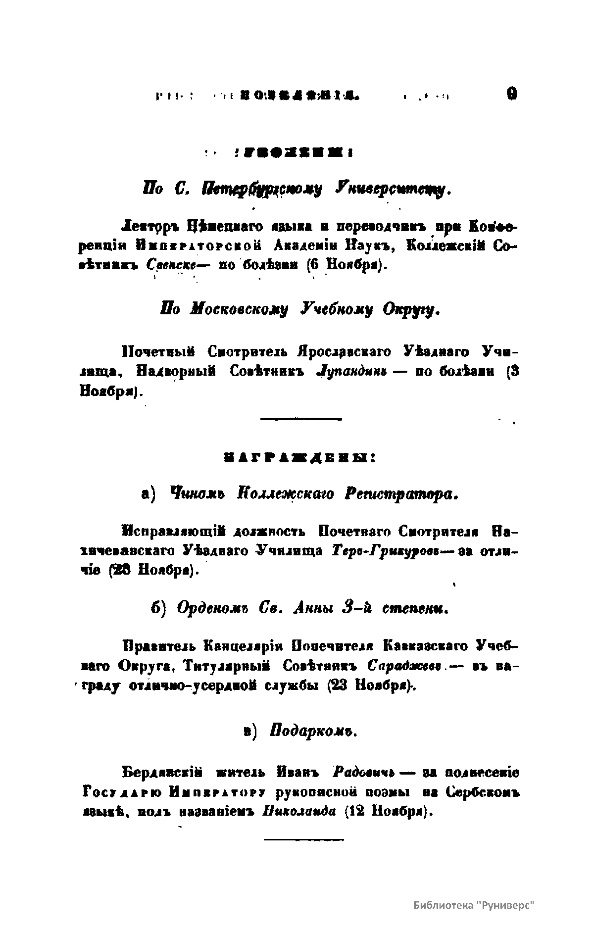 1. «Записки Департамента народного просвещения». Вышло в свет три книги этого издания – в 1825, 1827 и 1829-м годах.