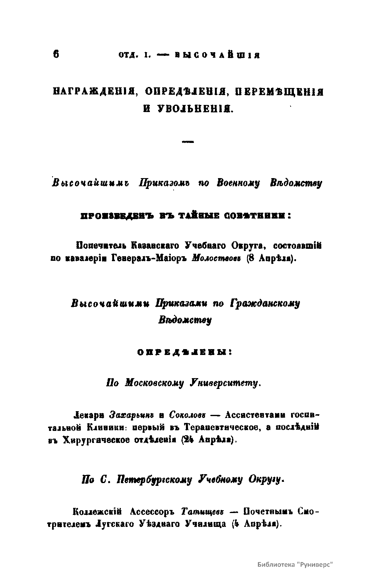 1. «Записки Департамента народного просвещения». Вышло в свет три книги этого издания – в 1825, 1827 и 1829-м годах.