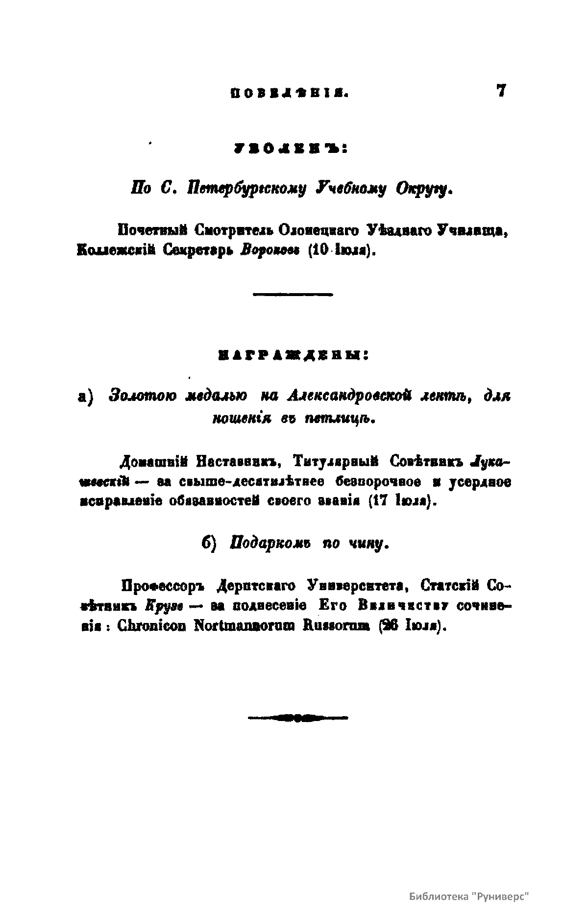1. «Записки Департамента народного просвещения». Вышло в свет три книги этого издания – в 1825, 1827 и 1829-м годах.