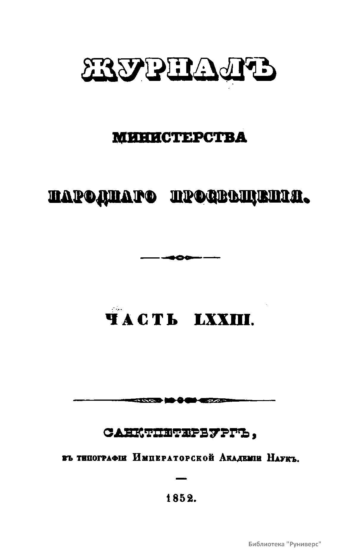 Журнал Министерства народного просвещения. Часть LXXIII