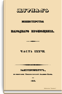 Журнал Министерства народного просвещения выходил с 1834-го по 1917 год. Официальный периодический журнал об успехах просвещения в России. Издатели журнала уверены в том, что «если для каждого человека необходим выход из грубой тьмы невежества и беспрерывное дальнейшее движение к свету, то для народов необходимо попечительное участие правительства в образовании. Только правительство имеет все средства знать и высоту успехов всемирного образования, и настоящие нужды Отечества».