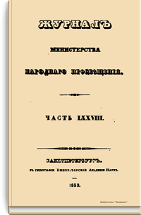 Журнал Министерства народного просвещения выходил с 1834-го по 1917 год. Официальный периодический журнал об успехах просвещения в России. Издатели журнала уверены в том, что «если для каждого человека необходим выход из грубой тьмы невежества и беспрерывное дальнейшее движение к свету, то для народов необходимо попечительное участие правительства в образовании. Только правительство имеет все средства знать и высоту успехов всемирного образования, и настоящие нужды Отечества».
