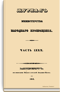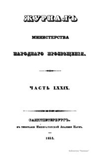 Журнал Министерства народного просвещения выходил с 1834-го по 1917 год. Официальный периодический журнал об успехах просвещения в России. Издатели журнала уверены в том, что «если для каждого человека необходим выход из грубой тьмы невежества и беспрерывное дальнейшее движение к свету, то для народов необходимо попечительное участие правительства в образовании. Только правительство имеет все средства знать и высоту успехов всемирного образования, и настоящие нужды Отечества».
