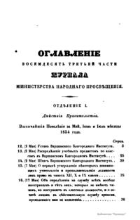 С 1864 года стали выходить указатели к повременным изданиям Министерства народного просвещения начиная с 1803 года.