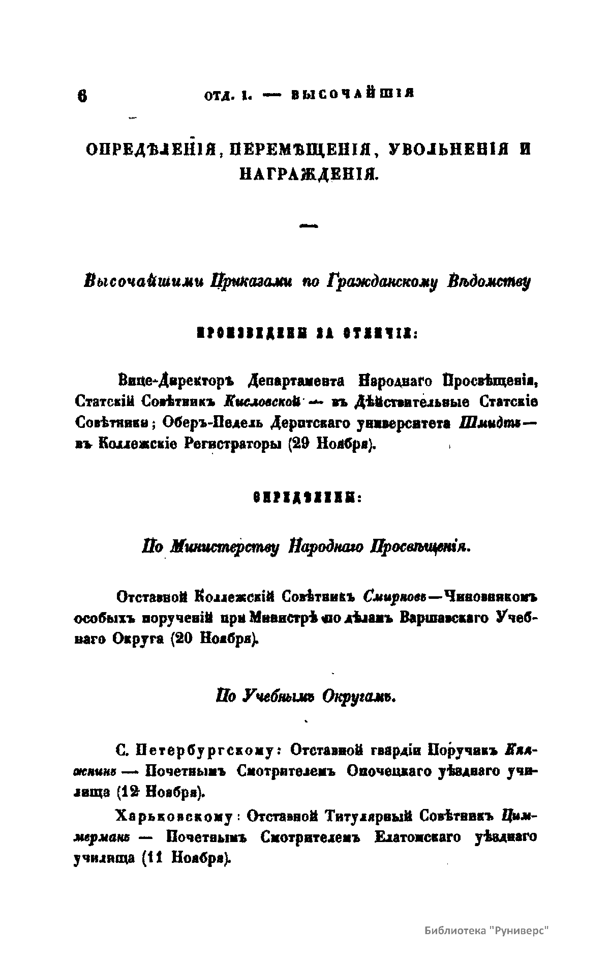 С 1864 года стали выходить указатели к повременным изданиям Министерства народного просвещения начиная с 1803 года.