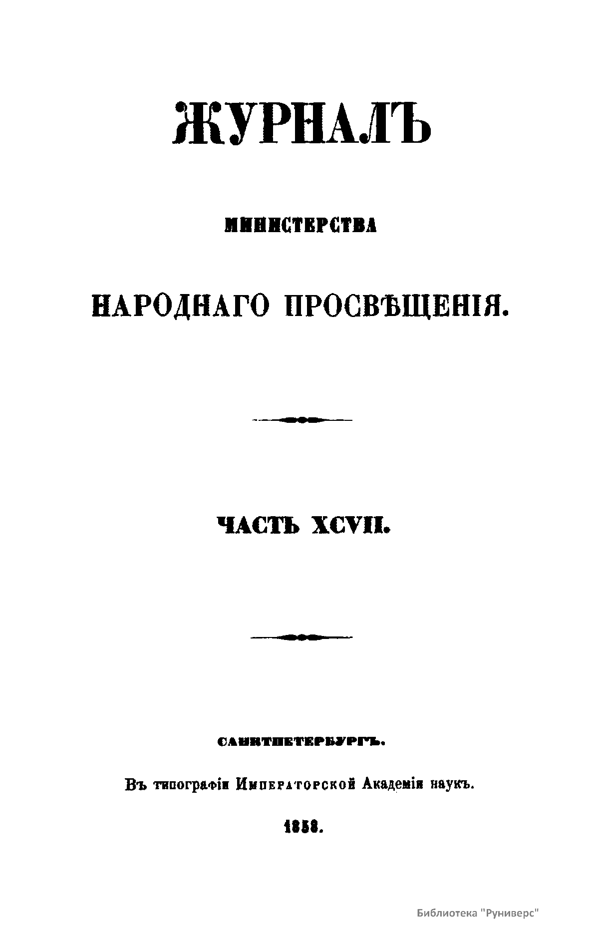 Журналъ Министерства народнаго просвѣщения. Часть XCVII