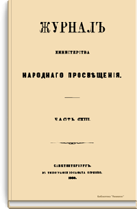 Журнал Министерства народного просвещения выходил с 1834-го по 1917 год. Официальный периодический журнал об успехах просвещения в России. Издатели журнала уверены в том, что «если для каждого человека необходим выход из грубой тьмы невежества и беспрерывное дальнейшее движение к свету, то для народов необходимо попечительное участие правительства в образовании. Только правительство имеет все средства знать и высоту успехов всемирного образования, и настоящие нужды Отечества».
