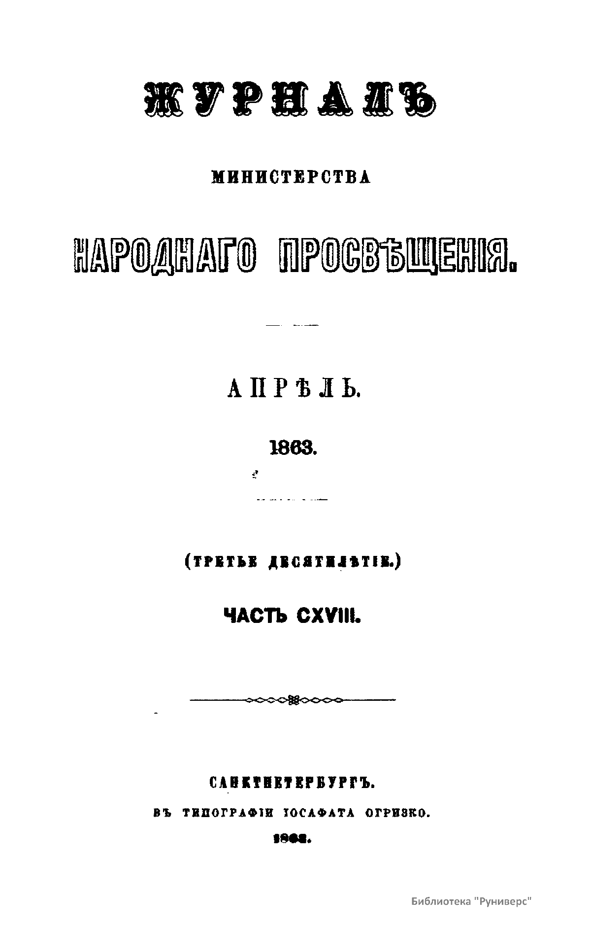 Журнал Министерства народного просвещения. Часть CXVIII