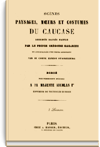 C 1845 г. князь Григорий Гагарин начинает выпускать в Париже альбом «Сцены, пейзажи, нравы и костюмы Кавказа» на французском языке. Две части альбома «Живописный Кавказ» и «Костюмы Кавказа» выполнены на основе многочисленных живописных и графических работ князя с натуры.Планировалось 48 выпусков. Каждый выпуск должен был содержать четыре литографии с текстом графа Эрнеста Стакельберга и шесть литографий, представляющих костюмы, без текста.