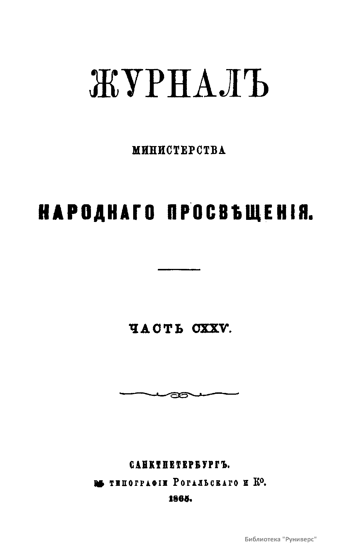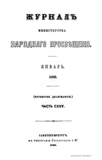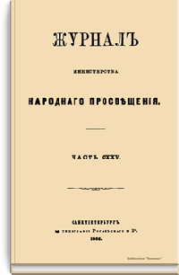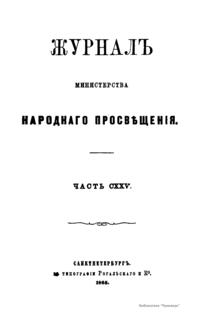 Журнал Министерства народного просвещения выходил с 1834-го по 1917 год. Официальный периодический журнал об успехах просвещения в России. Издатели журнала уверены в том, что «если для каждого человека необходим выход из грубой тьмы невежества и беспрерывное дальнейшее движение к свету, то для народов необходимо попечительное участие правительства в образовании. Только правительство имеет все средства знать и высоту успехов всемирного образования, и настоящие нужды Отечества».