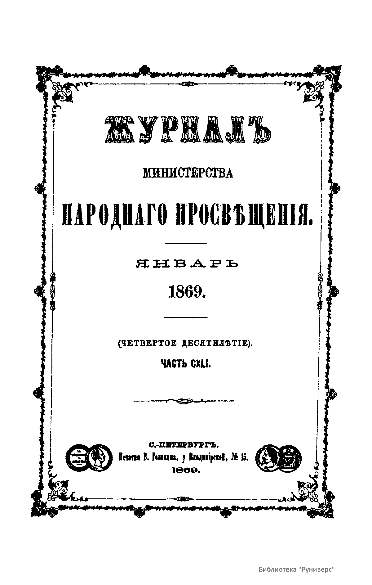 Журнал Министерства народного просвещения. Часть CXLI