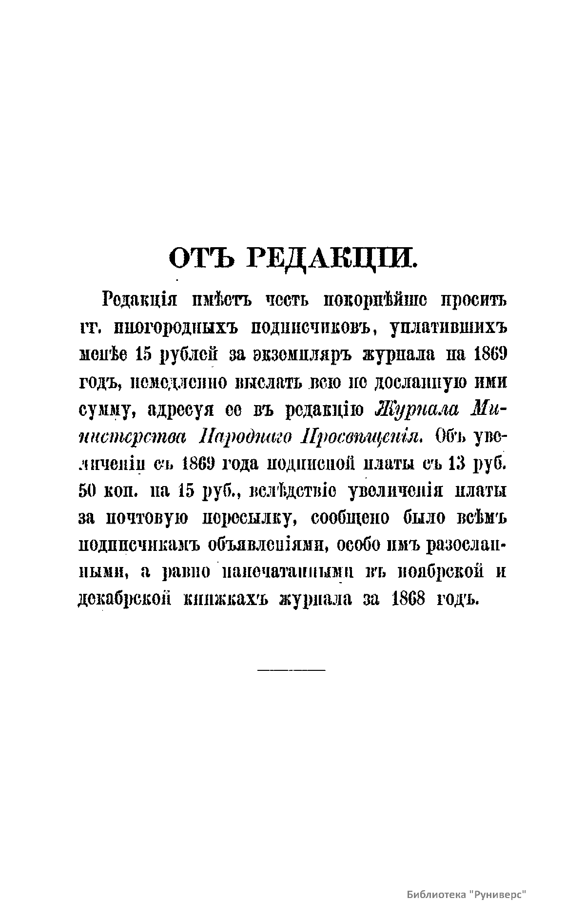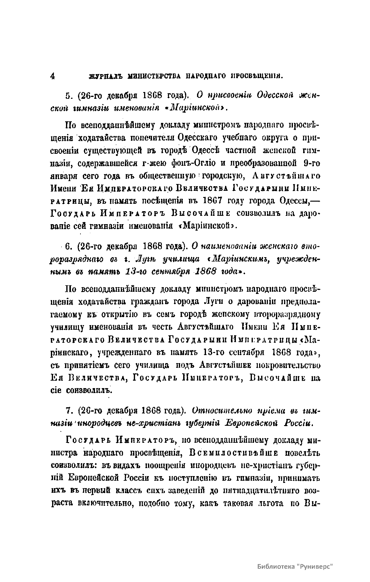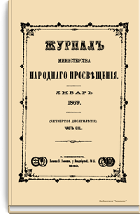 Журнал Министерства народного просвещения выходил с 1834-го по 1917 год. Официальный периодический журнал об успехах просвещения в России. Издатели журнала уверены в том, что «если для каждого человека необходим выход из грубой тьмы невежества и беспрерывное дальнейшее движение к свету, то для народов необходимо попечительное участие правительства в образовании. Только правительство имеет все средства знать и высоту успехов всемирного образования, и настоящие нужды Отечества».