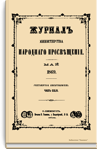Журнал Министерства народного просвещения выходил с 1834-го по 1917 год. Официальный периодический журнал об успехах просвещения в России. Издатели журнала уверены в том, что «если для каждого человека необходим выход из грубой тьмы невежества и беспрерывное дальнейшее движение к свету, то для народов необходимо попечительное участие правительства в образовании. Только правительство имеет все средства знать и высоту успехов всемирного образования, и настоящие нужды Отечества».