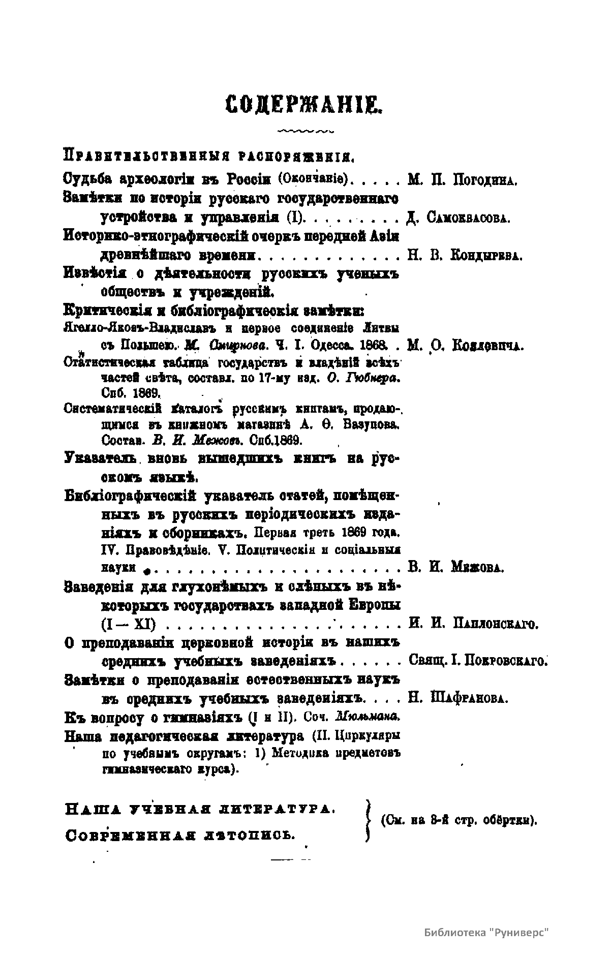 С 1864 года стали выходить указатели к повременным изданиям Министерства народного просвещения начиная с 1803 года.
