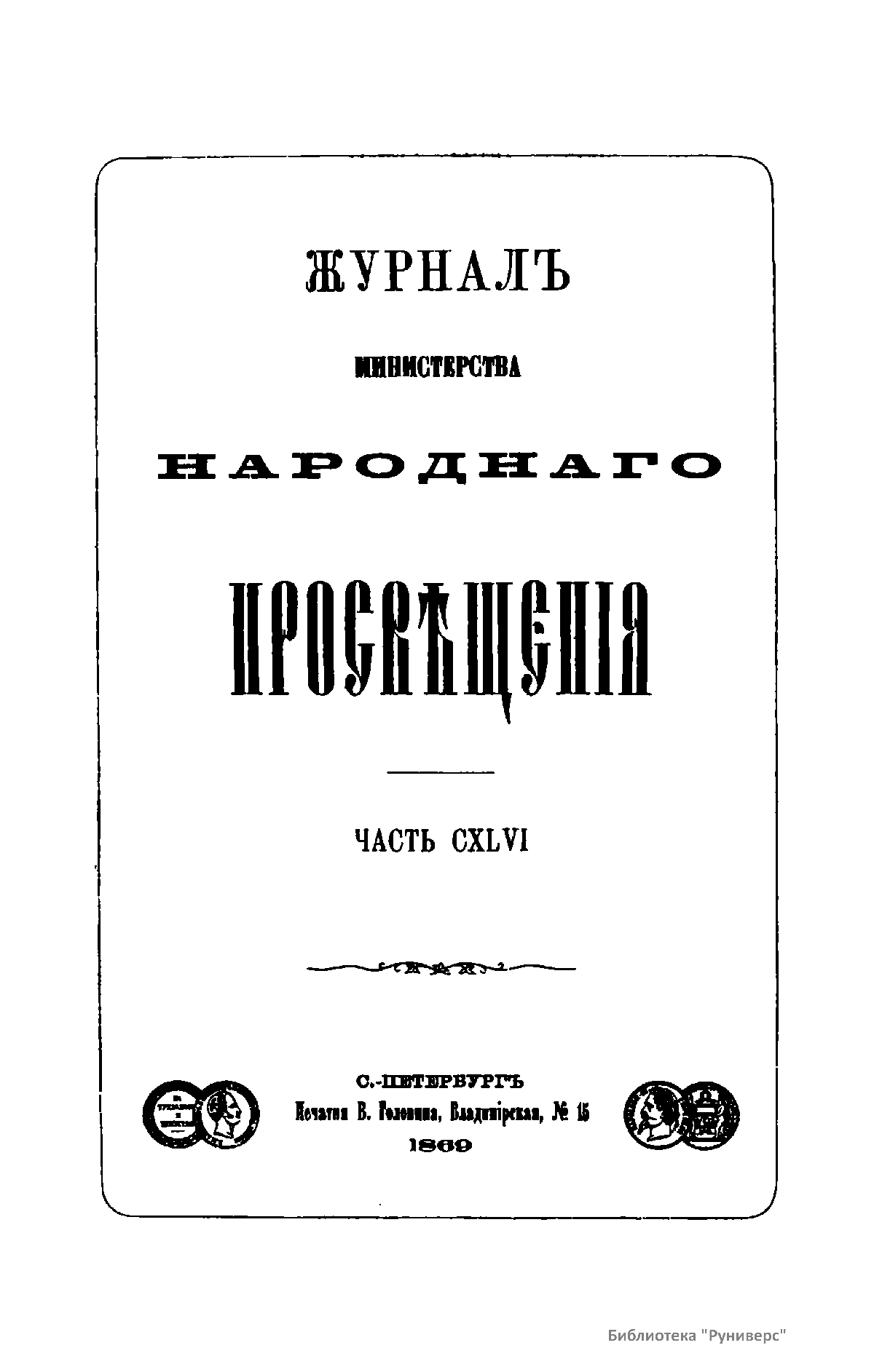 Журналъ Министерства народнаго просвѣщения. Часть CXLVI