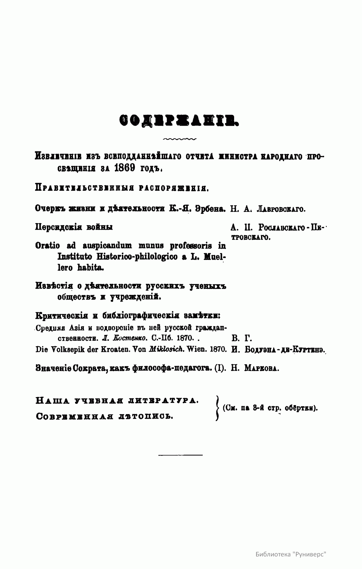 С 1864 года стали выходить указатели к повременным изданиям Министерства народного просвещения начиная с 1803 года.