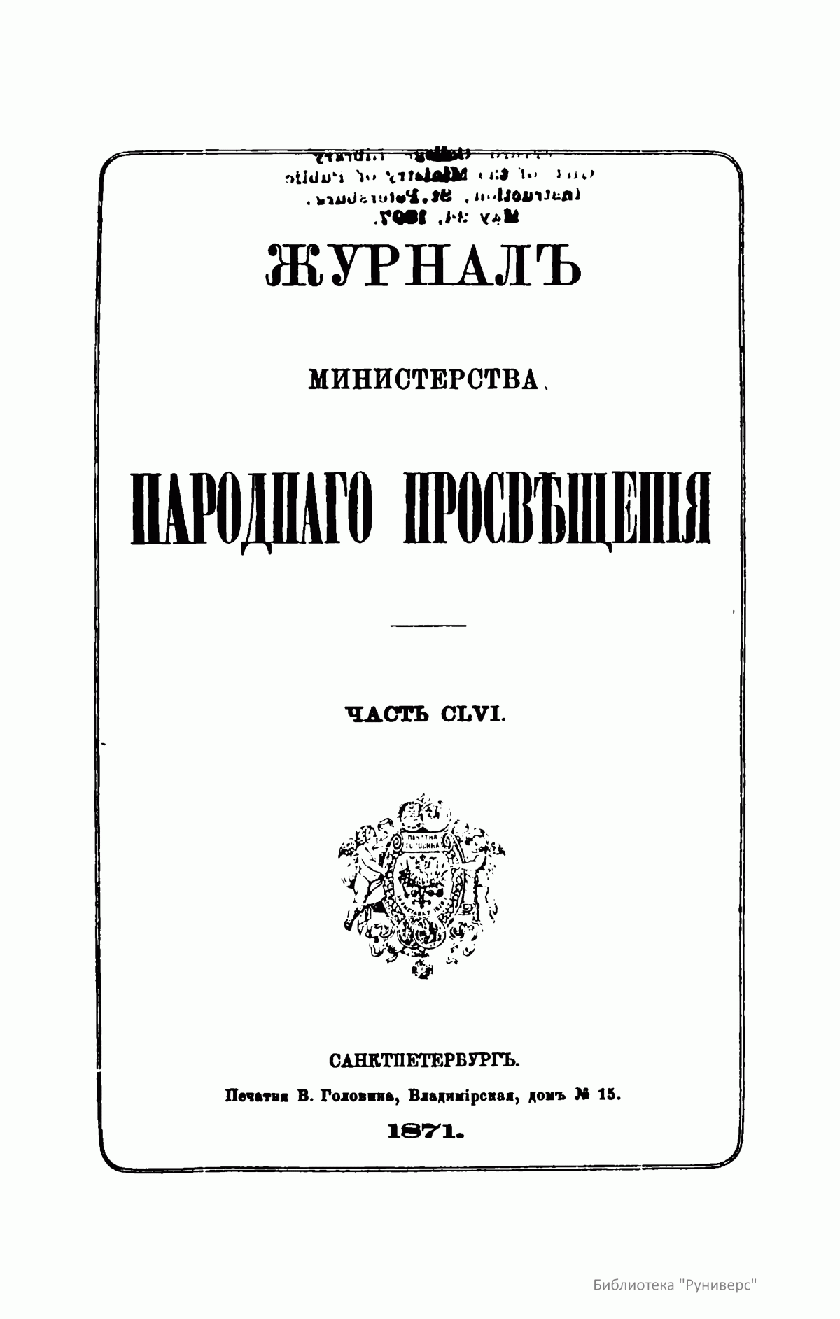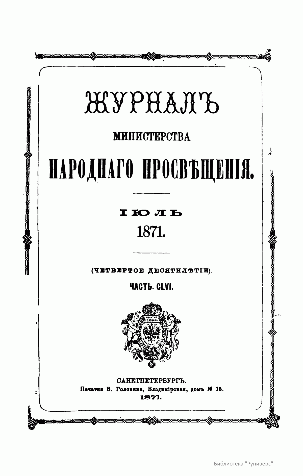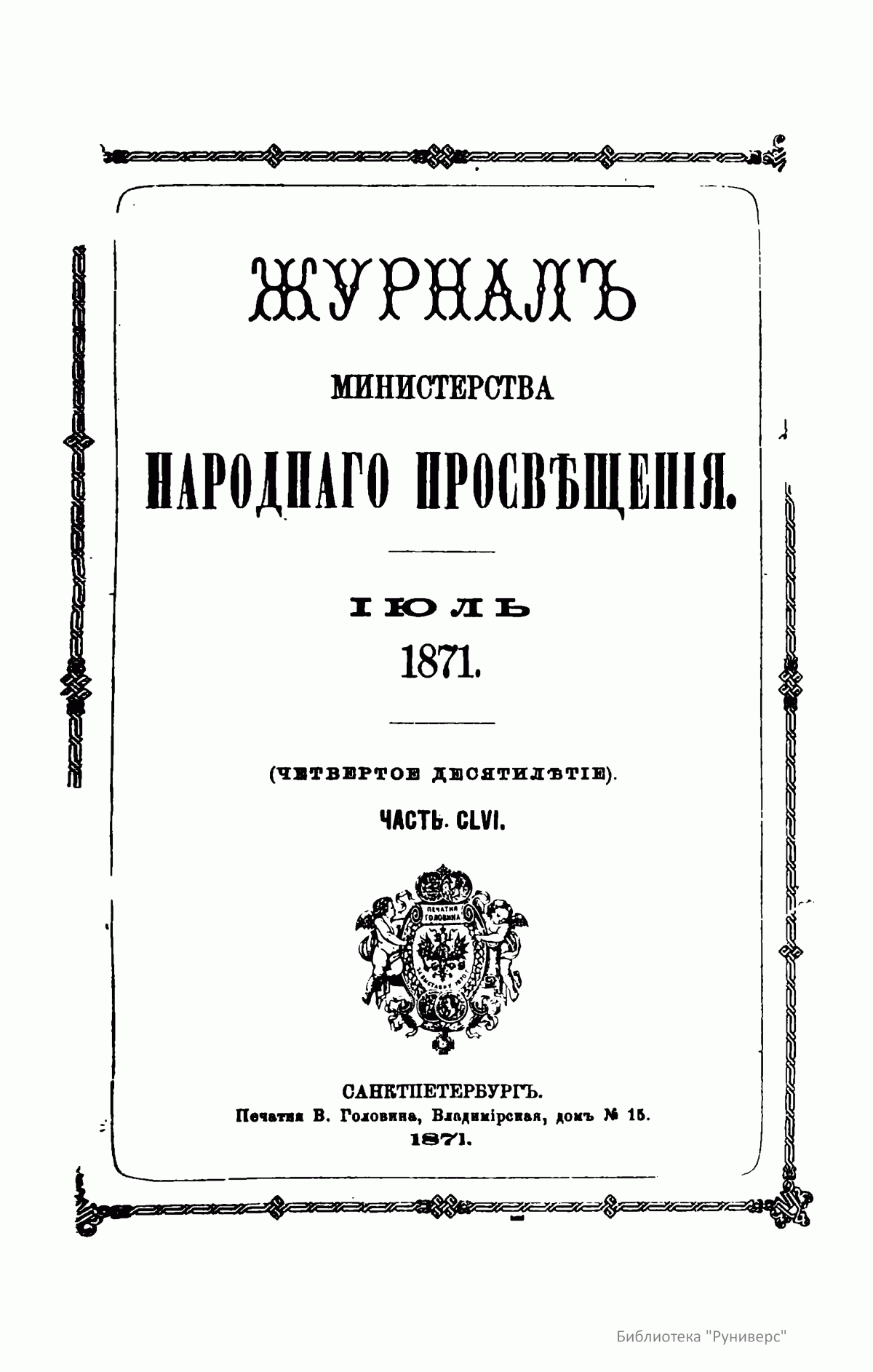 Журнал Министерства народного просвещения. Часть CLVI