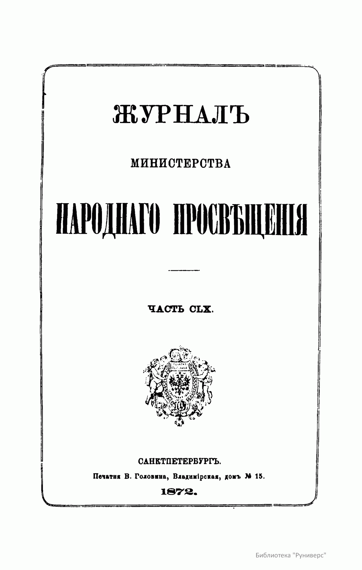 Журналъ Министерства народнаго просвѣщения. Часть CLX