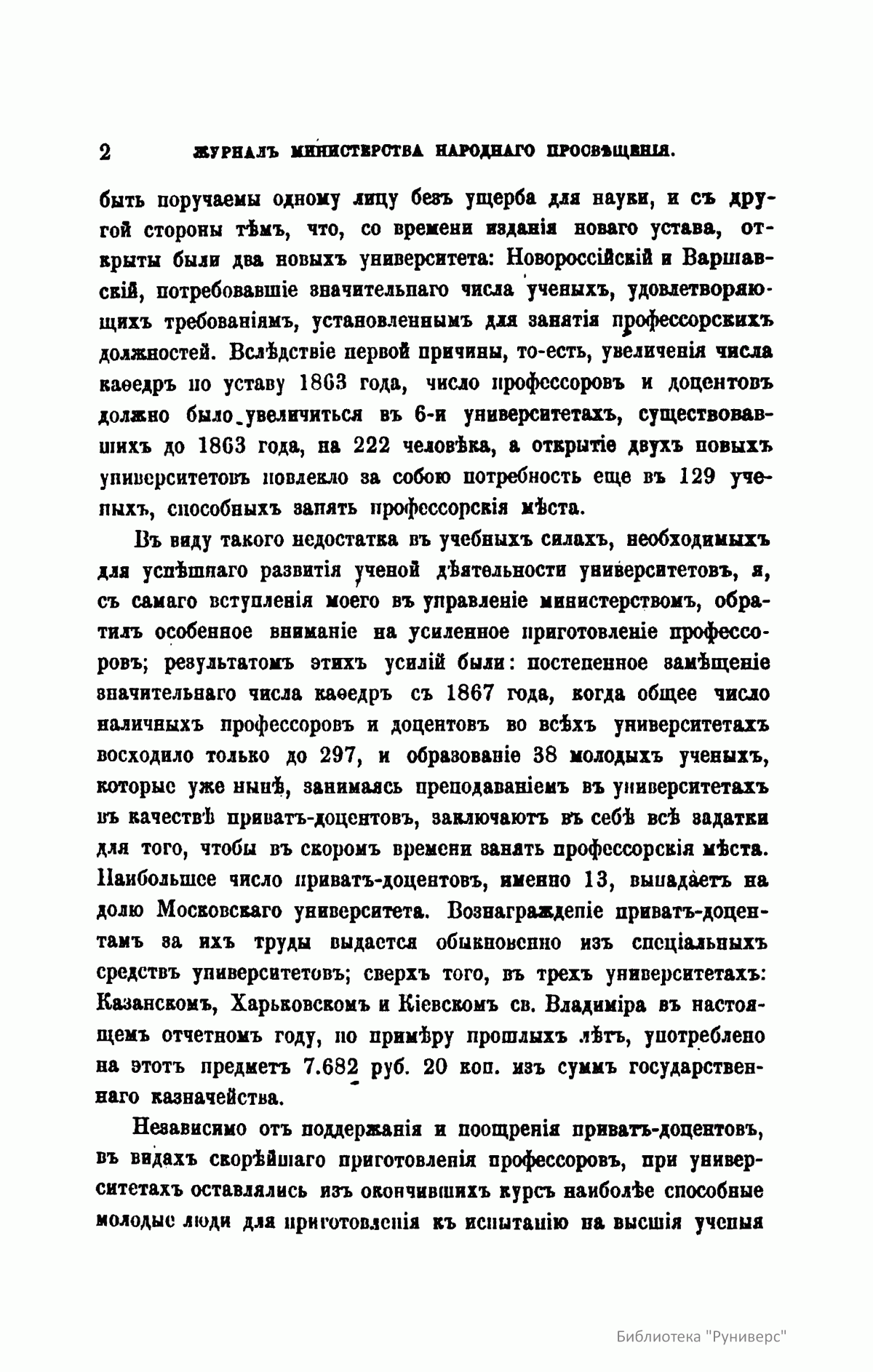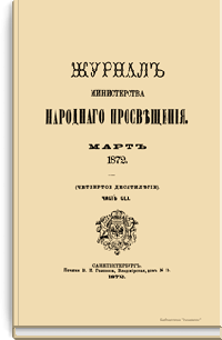 Журнал Министерства народного просвещения выходил с 1834-го по 1917 год. Официальный периодический журнал об успехах просвещения в России. Издатели журнала уверены в том, что «если для каждого человека необходим выход из грубой тьмы невежества и беспрерывное дальнейшее движение к свету, то для народов необходимо попечительное участие правительства в образовании. Только правительство имеет все средства знать и высоту успехов всемирного образования, и настоящие нужды Отечества».