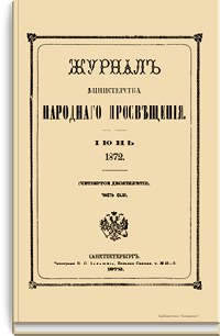 Журнал Министерства народного просвещения выходил с 1834-го по 1917 год. Официальный периодический журнал об успехах просвещения в России. Издатели журнала уверены в том, что «если для каждого человека необходим выход из грубой тьмы невежества и беспрерывное дальнейшее движение к свету, то для народов необходимо попечительное участие правительства в образовании. Только правительство имеет все средства знать и высоту успехов всемирного образования, и настоящие нужды Отечества».