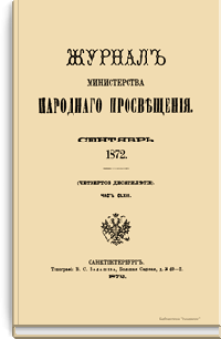 Журнал Министерства народного просвещения выходил с 1834-го по 1917 год. Официальный периодический журнал об успехах просвещения в России. Издатели журнала уверены в том, что «если для каждого человека необходим выход из грубой тьмы невежества и беспрерывное дальнейшее движение к свету, то для народов необходимо попечительное участие правительства в образовании. Только правительство имеет все средства знать и высоту успехов всемирного образования, и настоящие нужды Отечества».