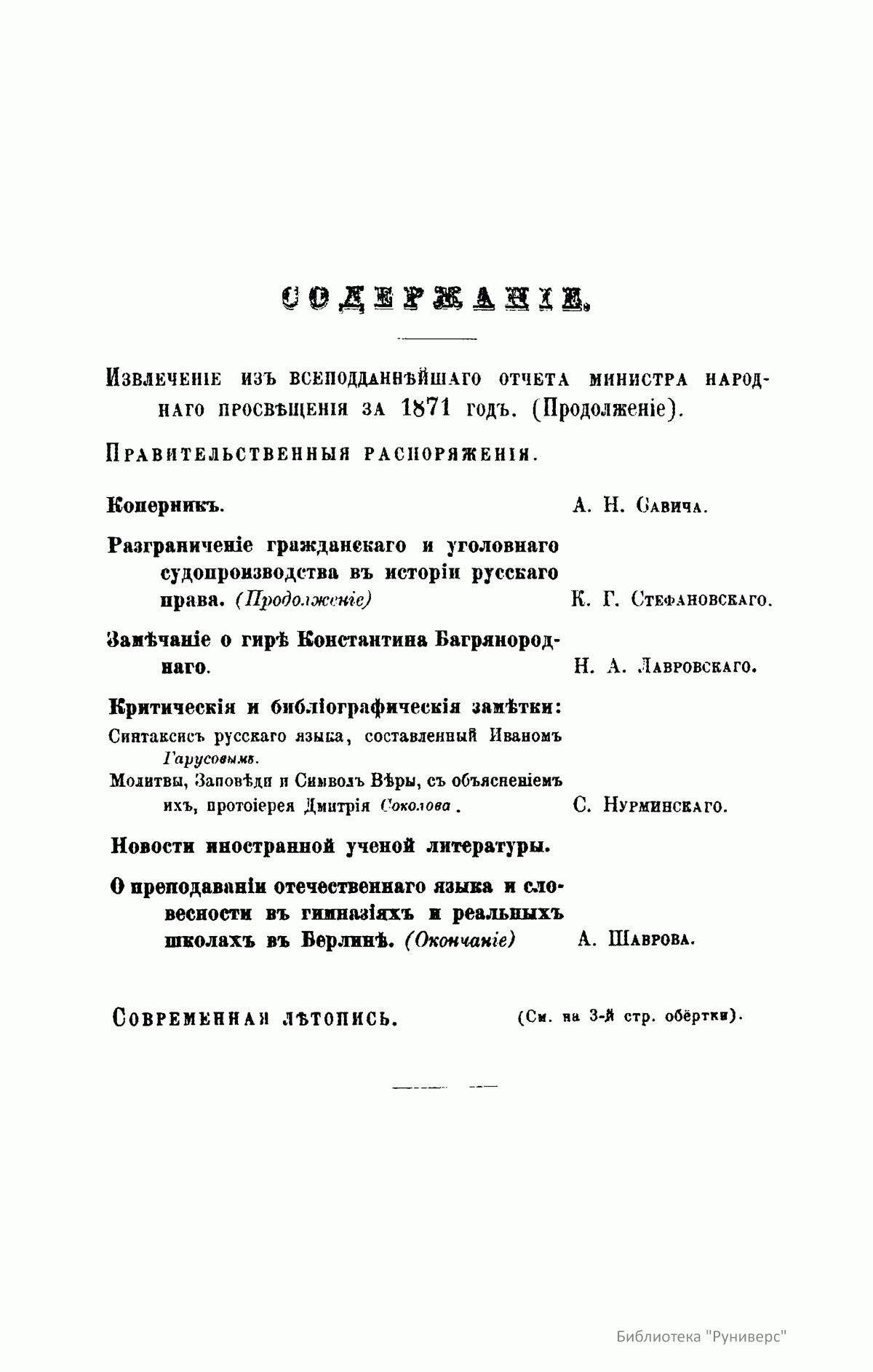 С 1864 года стали выходить указатели к повременным изданиям Министерства народного просвещения начиная с 1803 года.