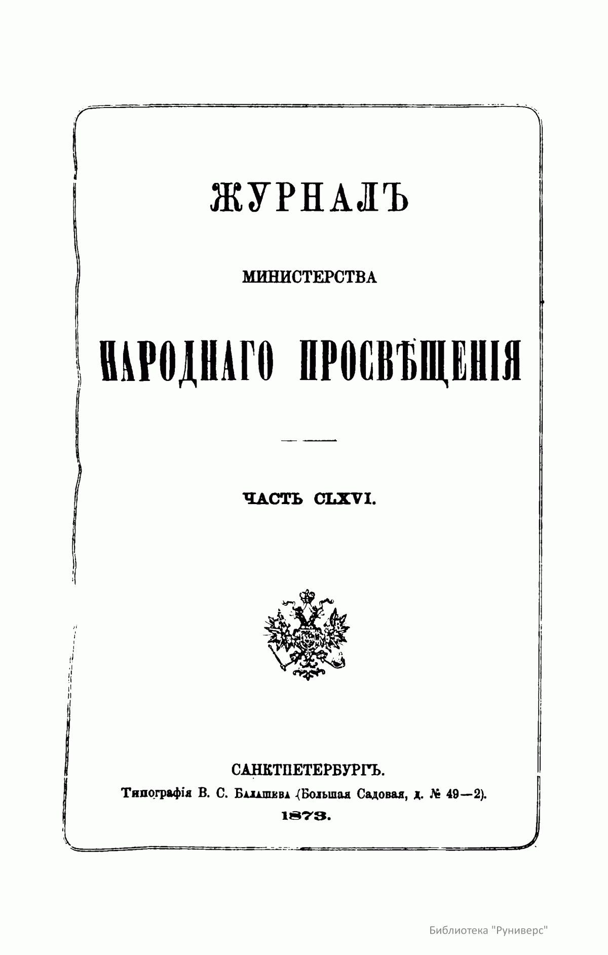 Журналъ Министерства народнаго просвѣщения. Часть CLXVI