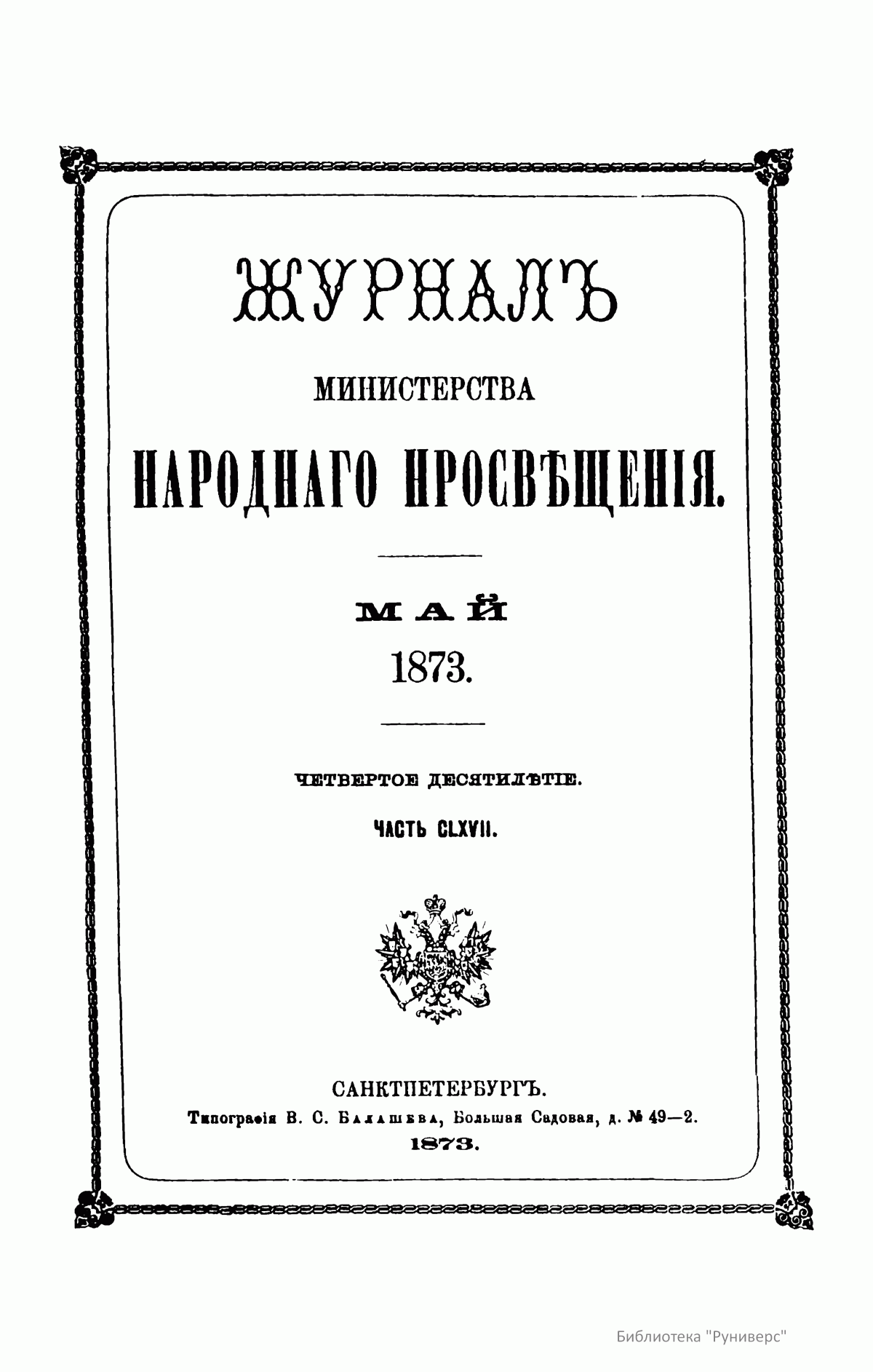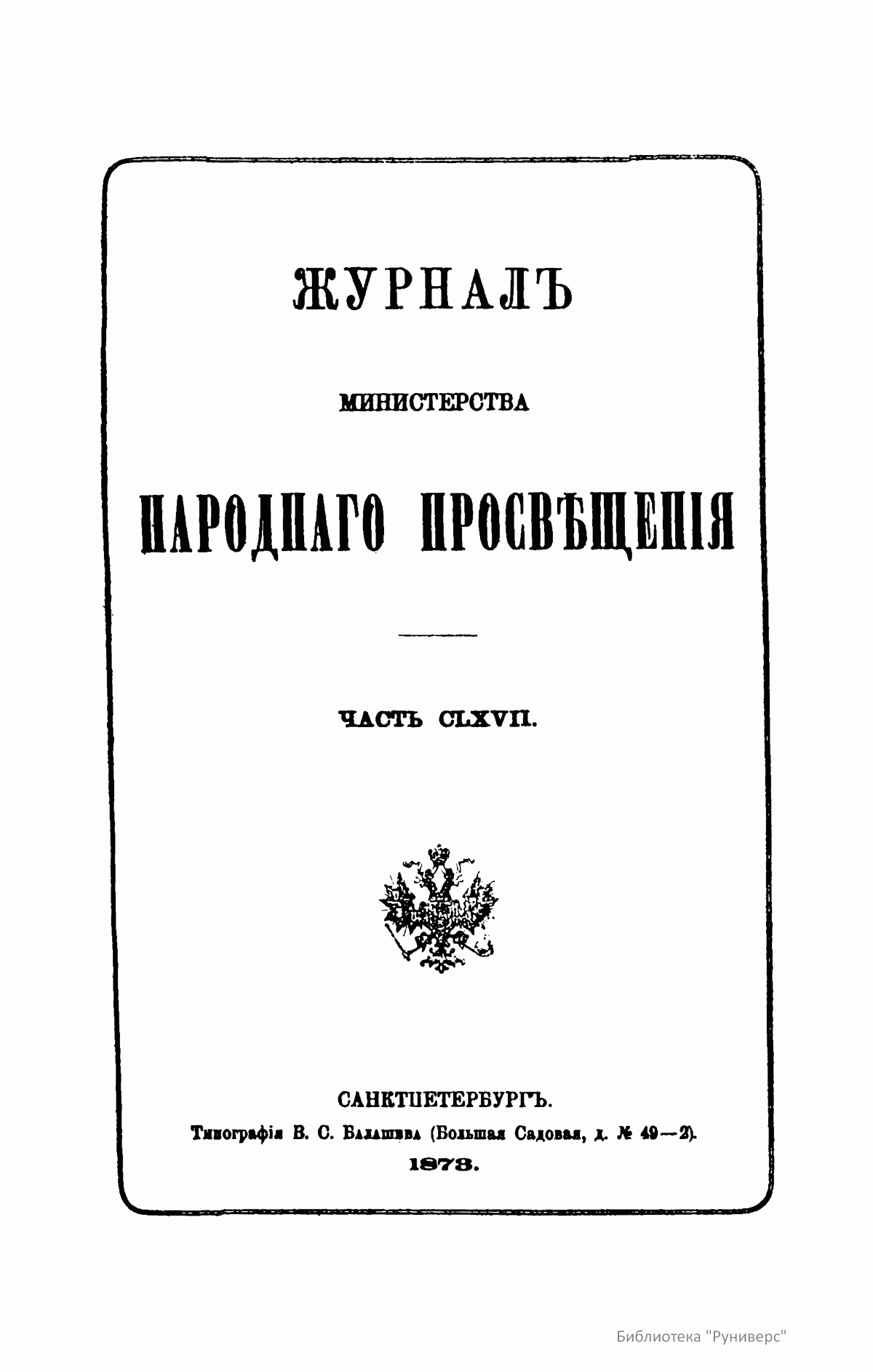 Журналъ Министерства народнаго просвѣщения. Часть CLXVII