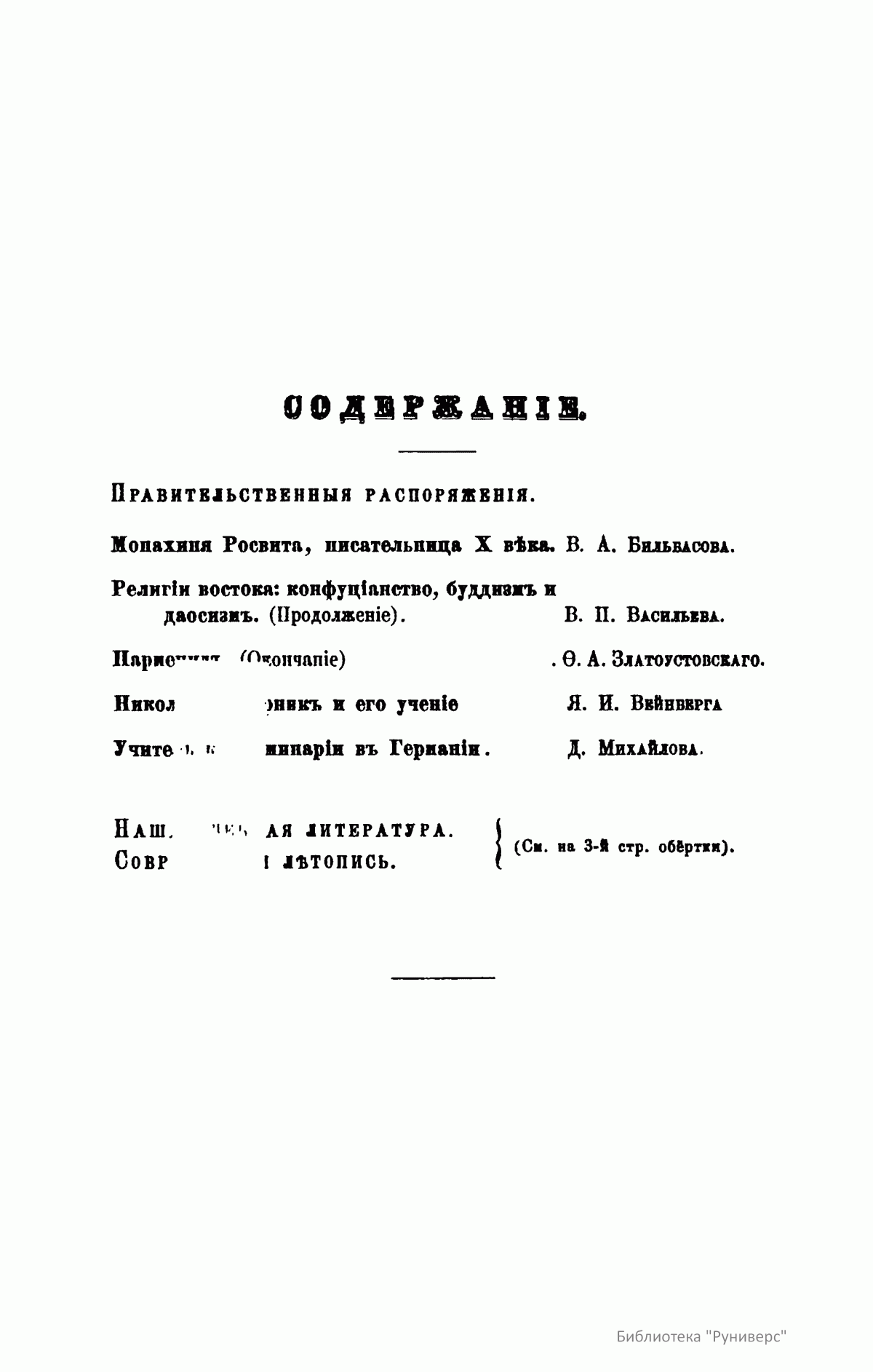 Журнал широкого профиля (гуманитарные науки), но в нем печатались философские статьи, имеется много официального материала, ценного для понимания истории философии в России.