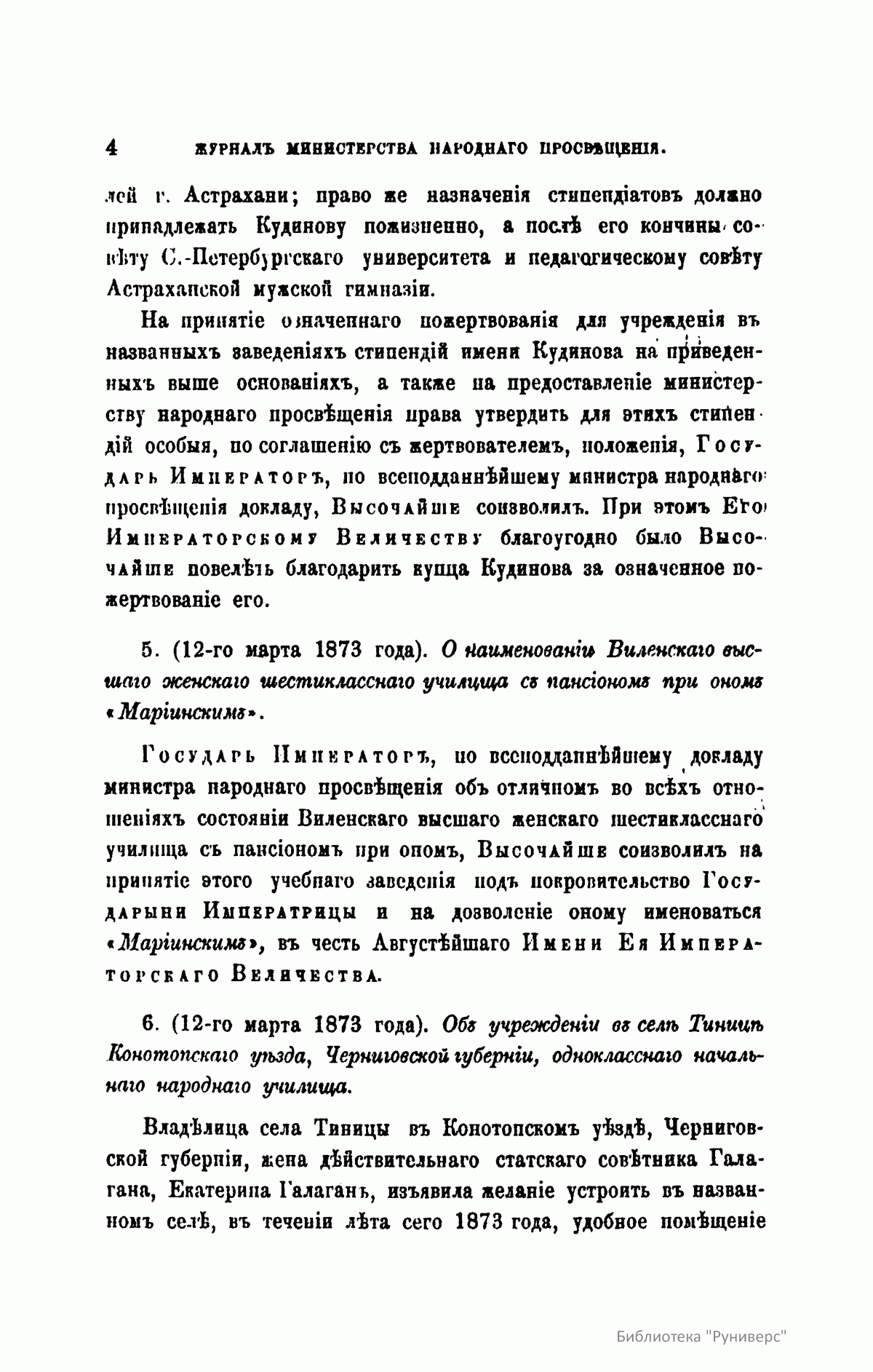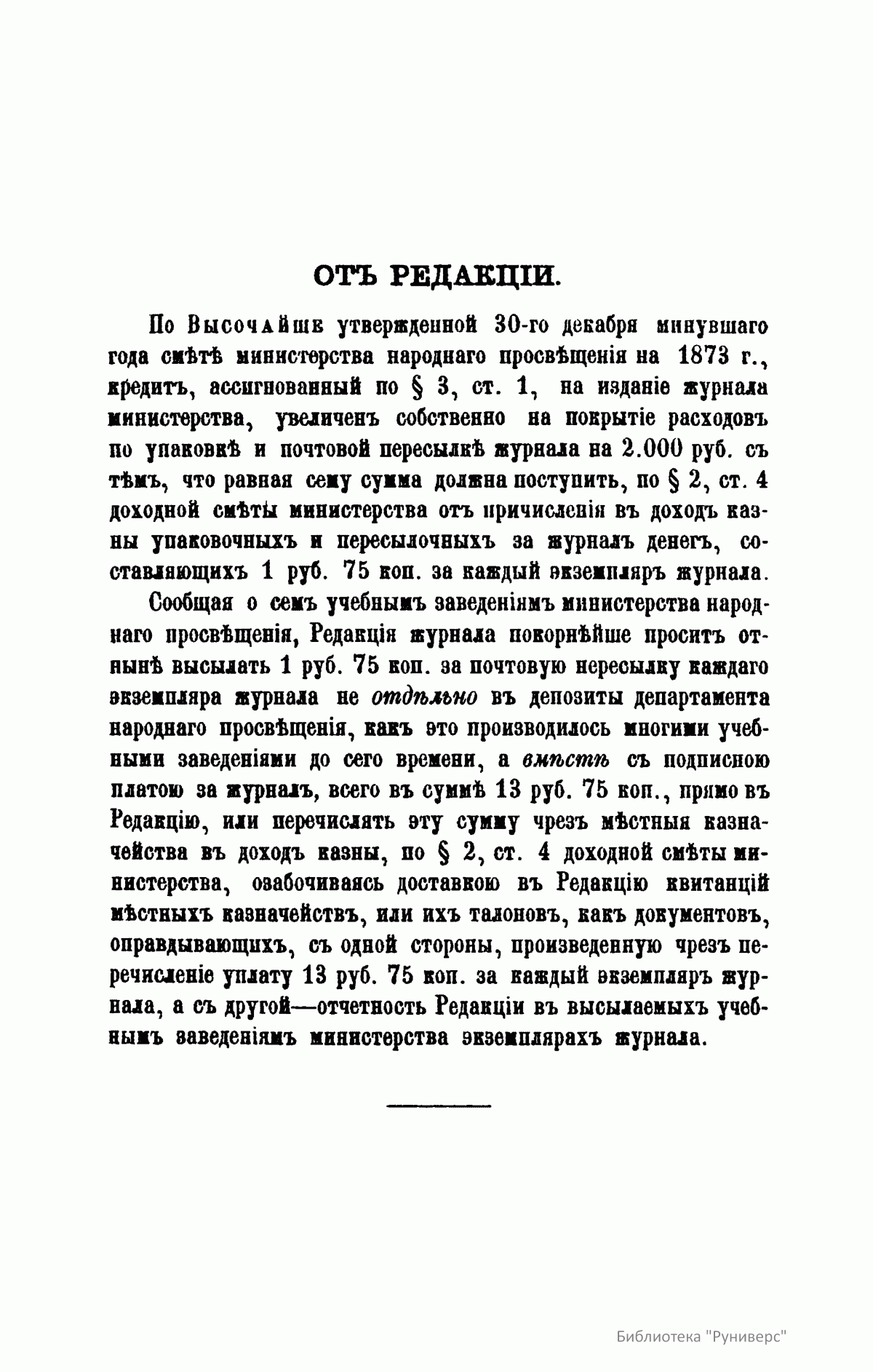 Журнал Министерства народного просвещения выходил с 1834-го по 1917 год. Официальный периодический журнал об успехах просвещения в России. Издатели журнала уверены в том, что «если для каждого человека необходим выход из грубой тьмы невежества и беспрерывное дальнейшее движение к свету, то для народов необходимо попечительное участие правительства в образовании. Только правительство имеет все средства знать и высоту успехов всемирного образования, и настоящие нужды Отечества».